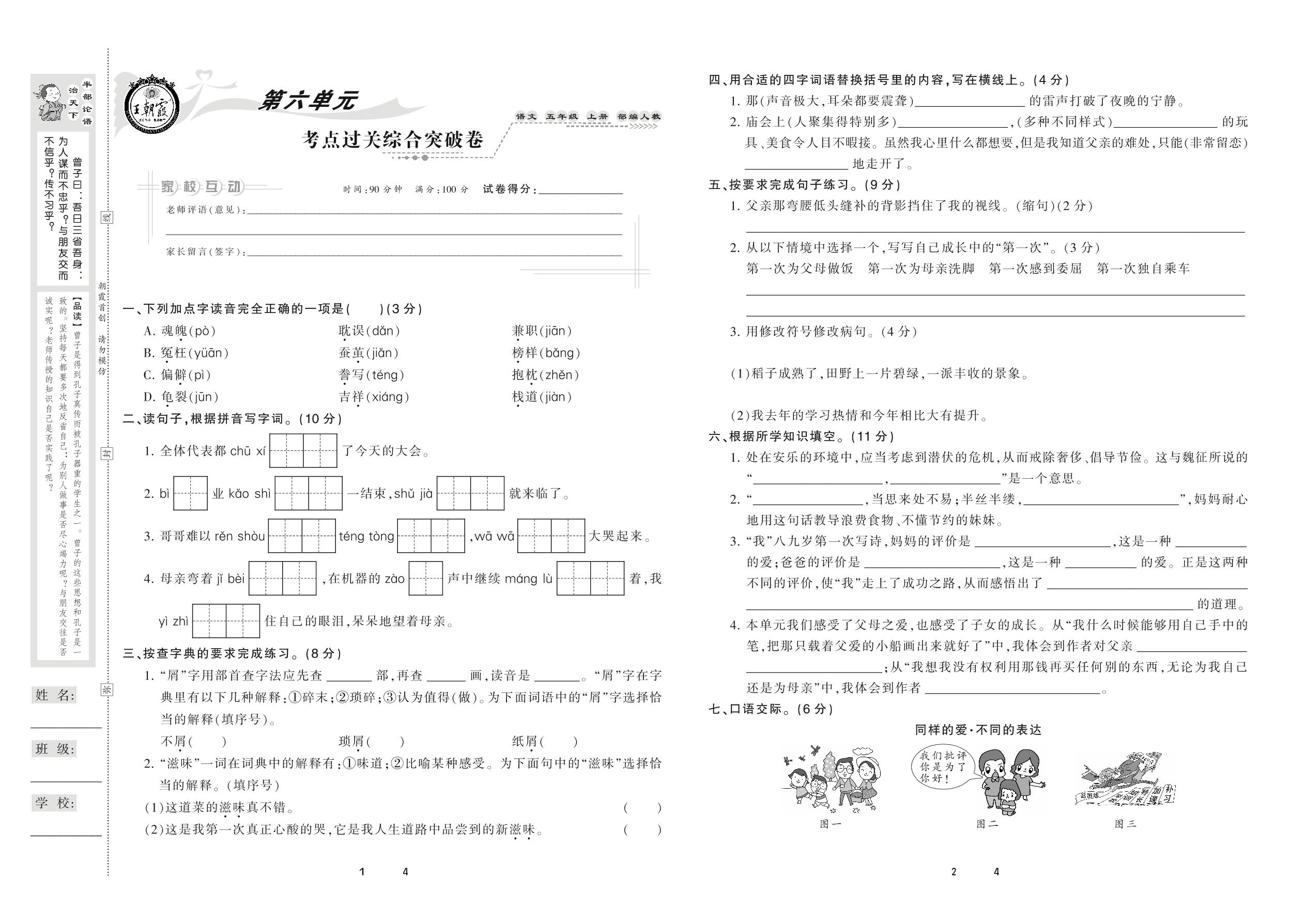 2020上册五年级语文人教版 第六单元 考点过关综合突破卷