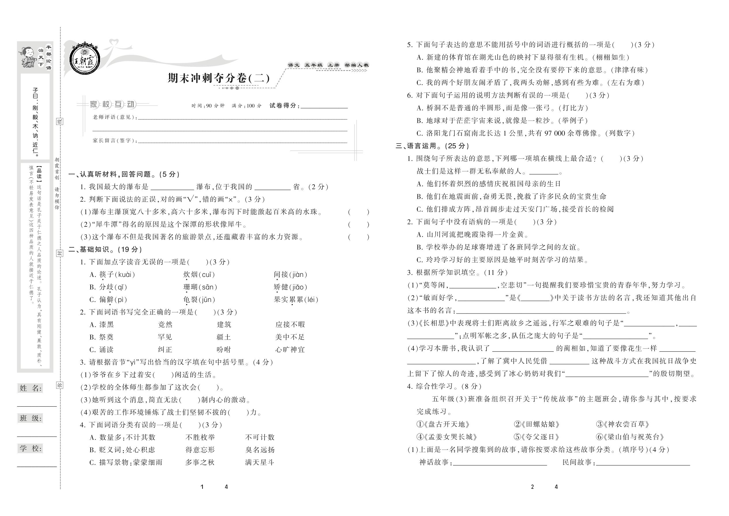 2020上册五年级语文人教版 期末冲刺夺分卷(二)