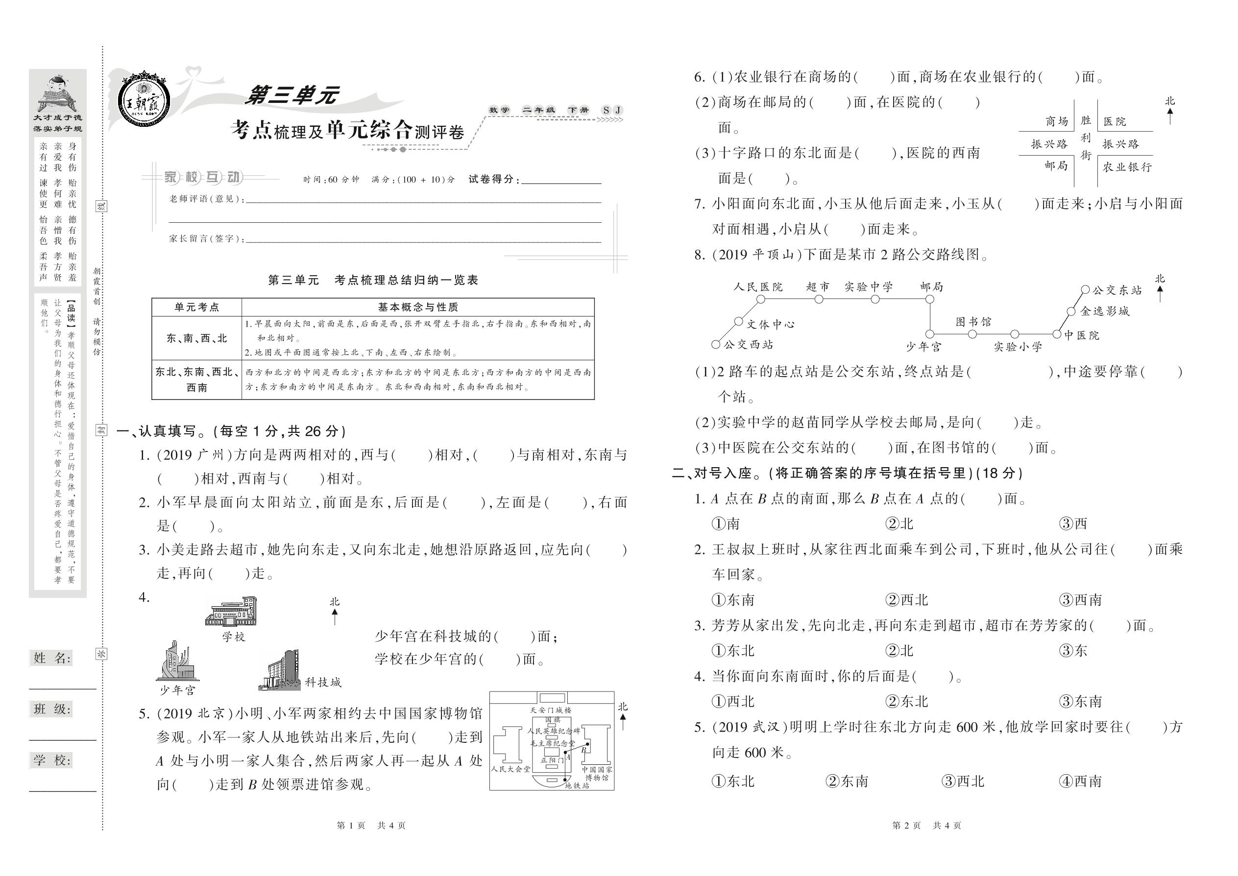 2021下册二年级数学苏教版 第三单元 考点梳理及单元综合测评卷