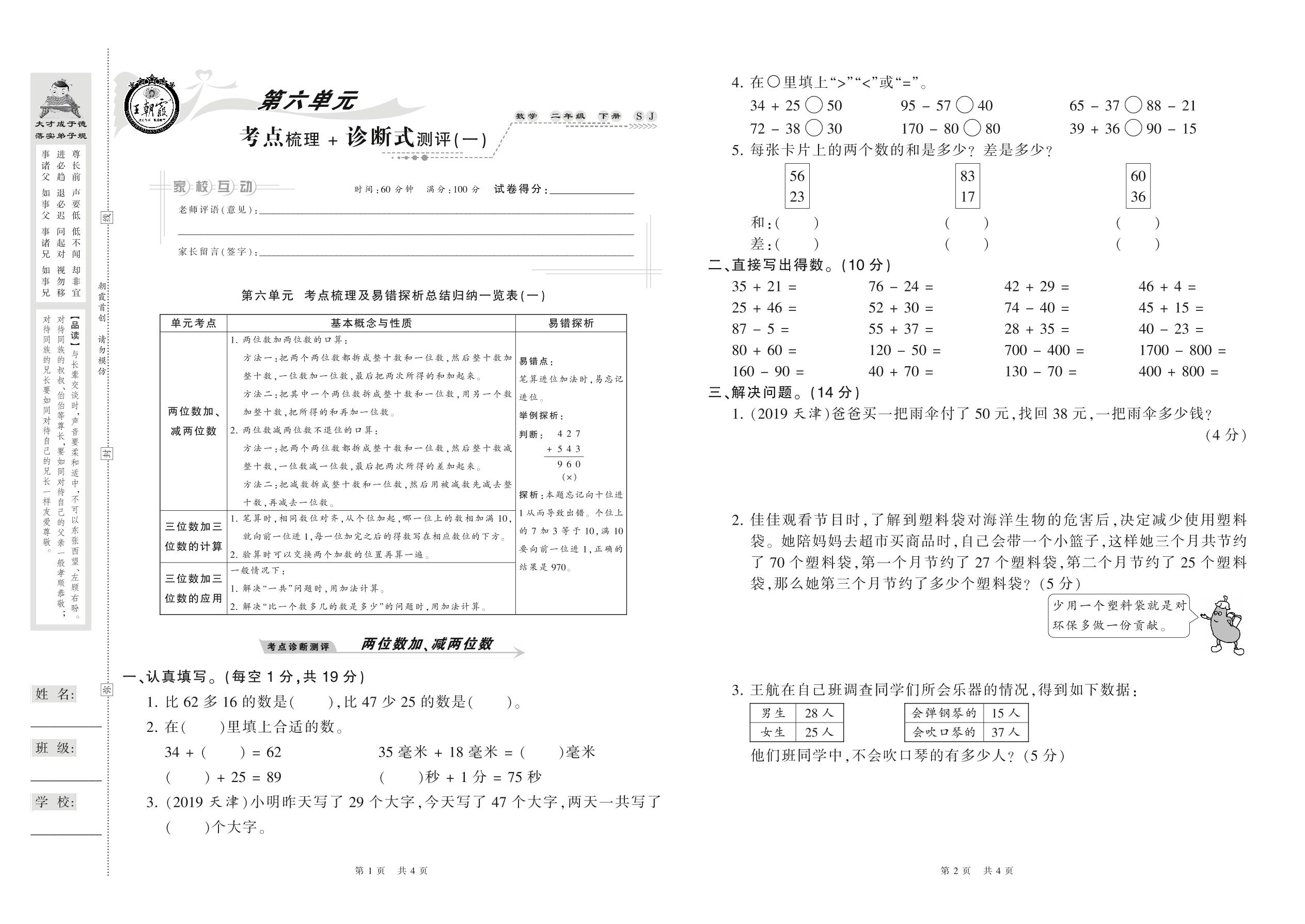 2021下册二年级数学苏教版 第六单元 考点梳理+诊断式测评(一)