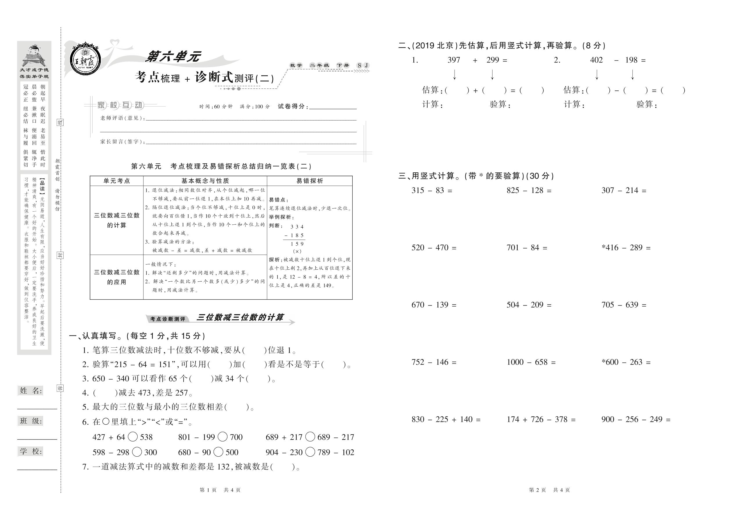 2021下册二年级数学苏教版 第六单元 考点梳理+诊断式测评(二)