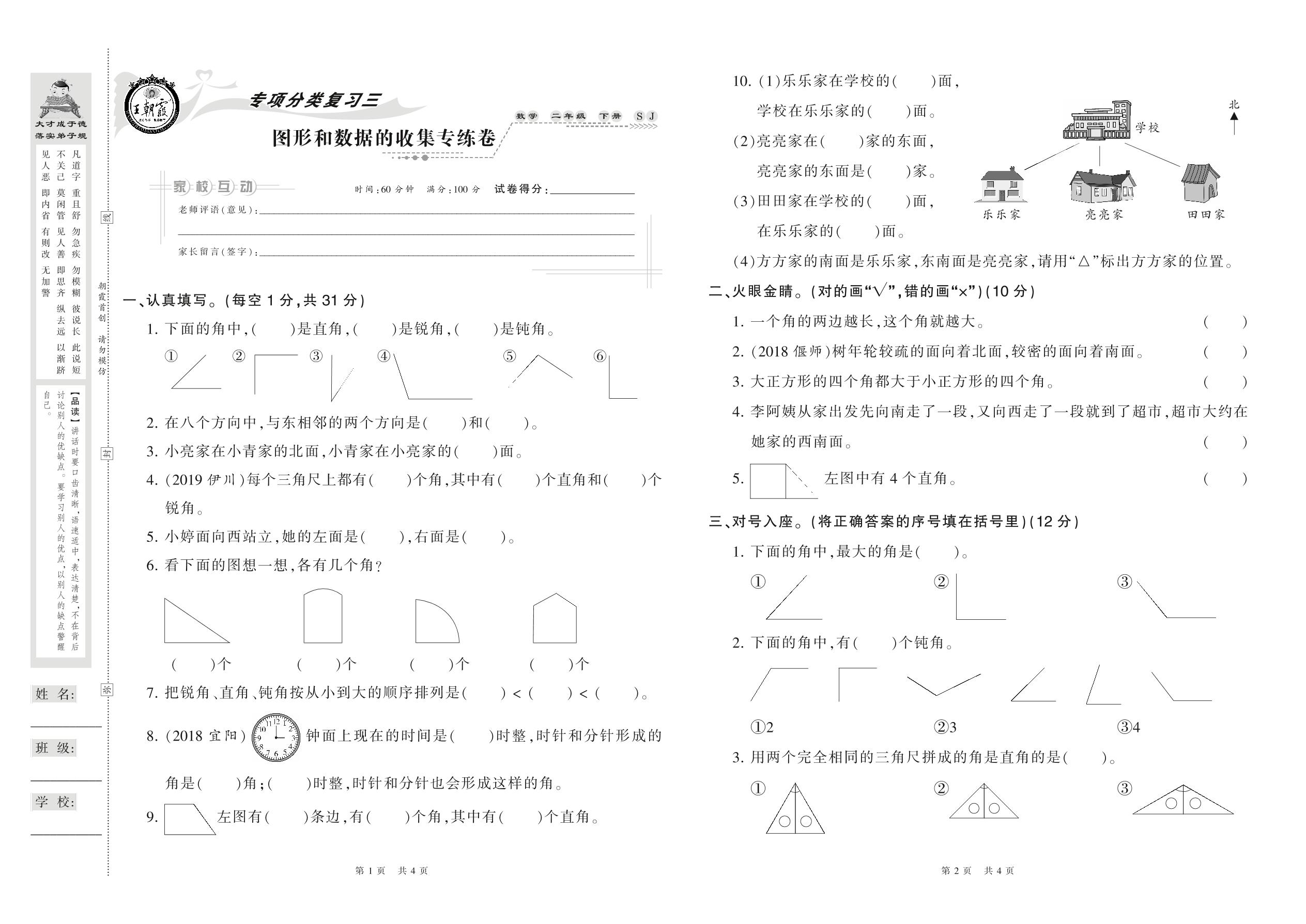 2021下册二年级数学苏教版 图形和数据的收集专练卷