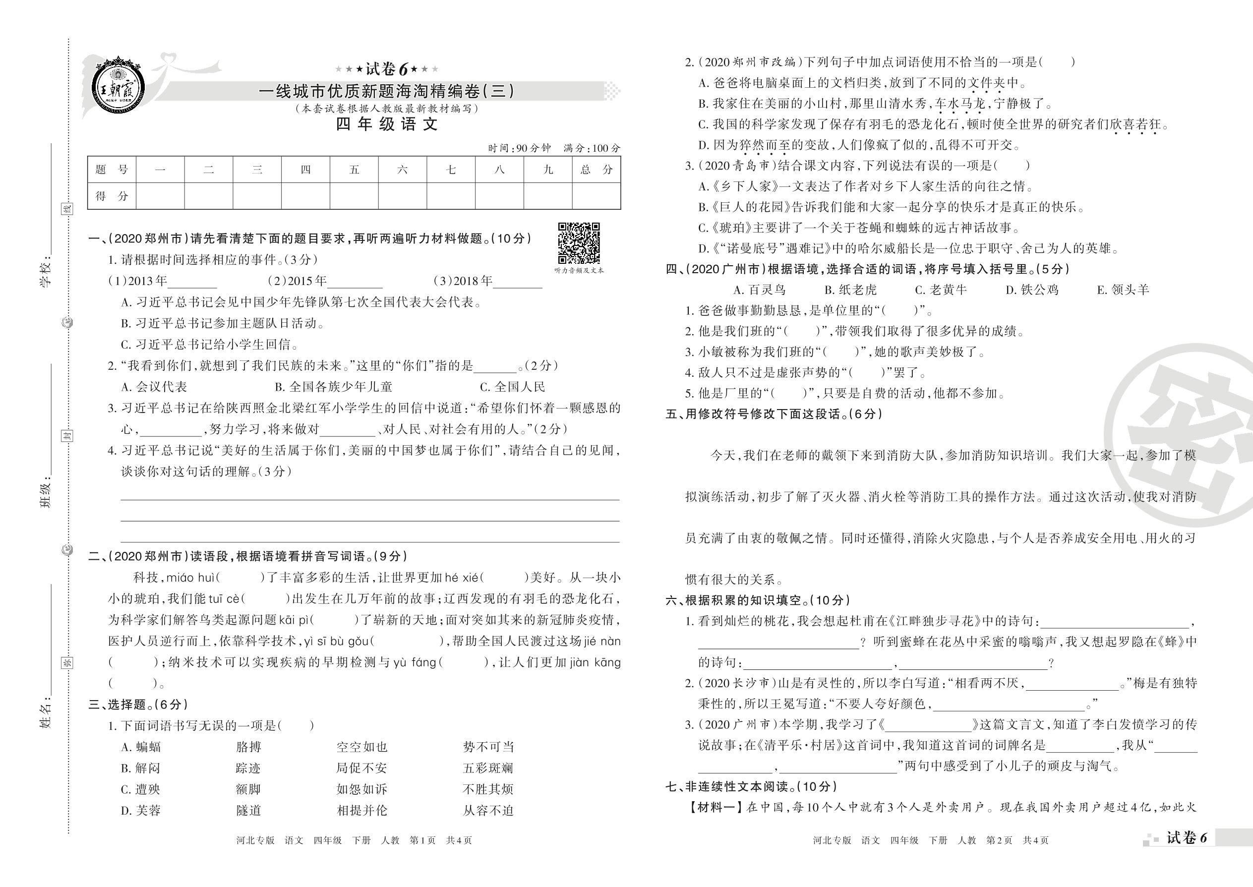 王朝霞海淘期末精编卷四年级下册语文(人教版)_R210801183201【6】