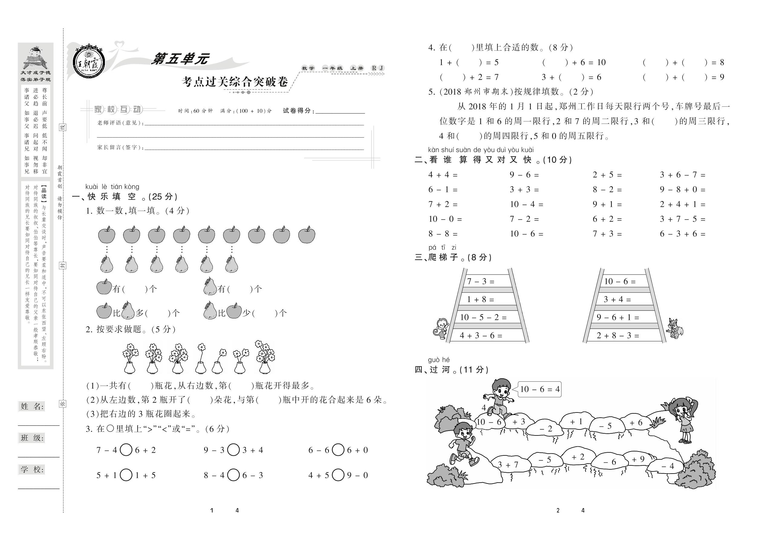 2020上册一年级数学人教版 第五单元 考点过关综合突破卷