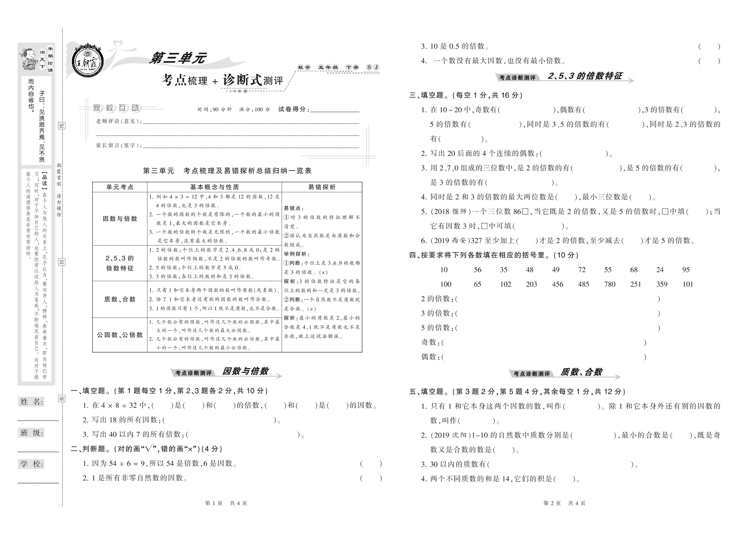 2021下册五年级数学苏教版 第三单元 考点梳理+诊断式测评