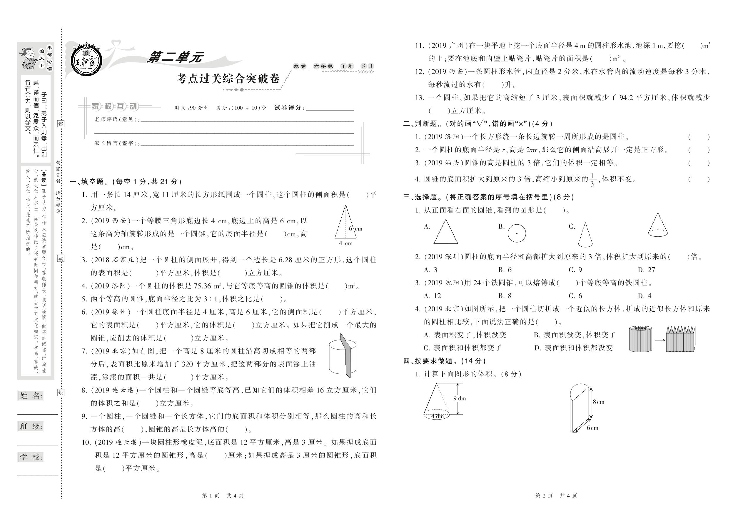 2021下册六年级数学苏教版 第二单元 考点过关综合突破卷