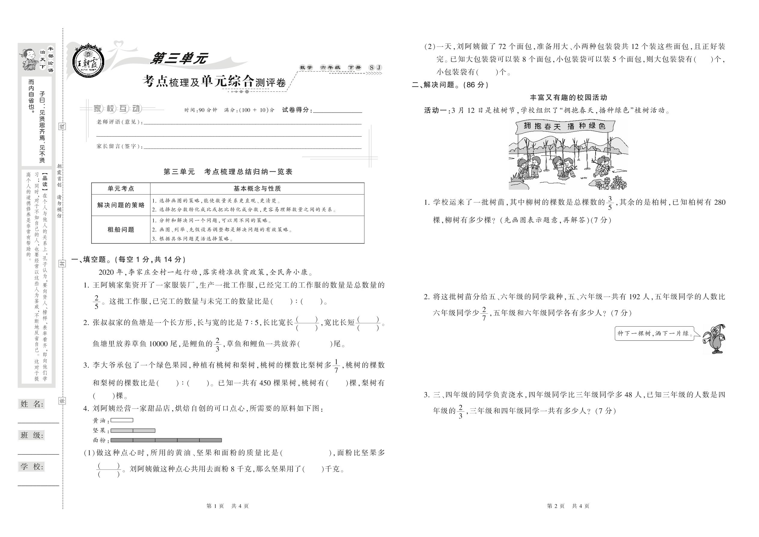 2021下册六年级数学苏教版 第三单元 考点梳理及单元综合测评卷