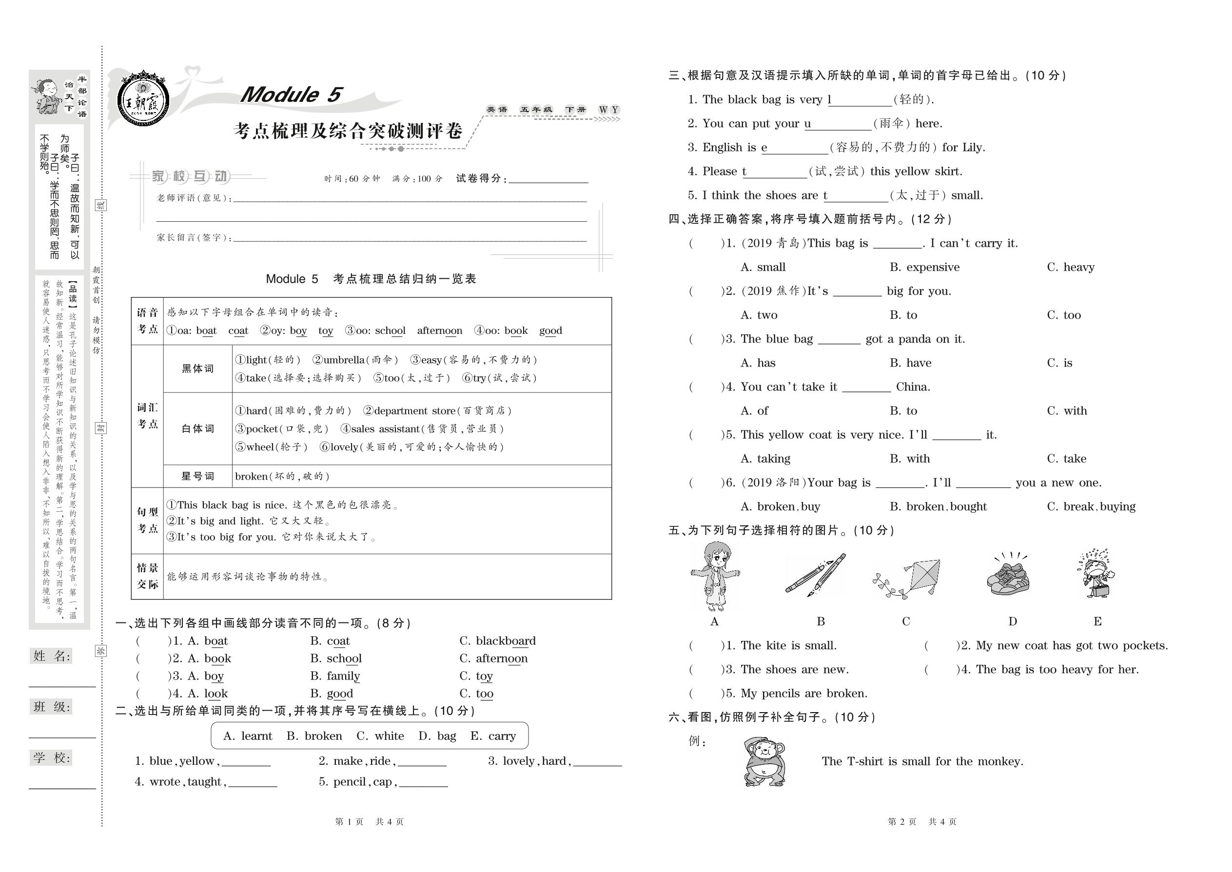 2021下册五年级英语外研版 Module 5 考点梳理及综合突破测评卷