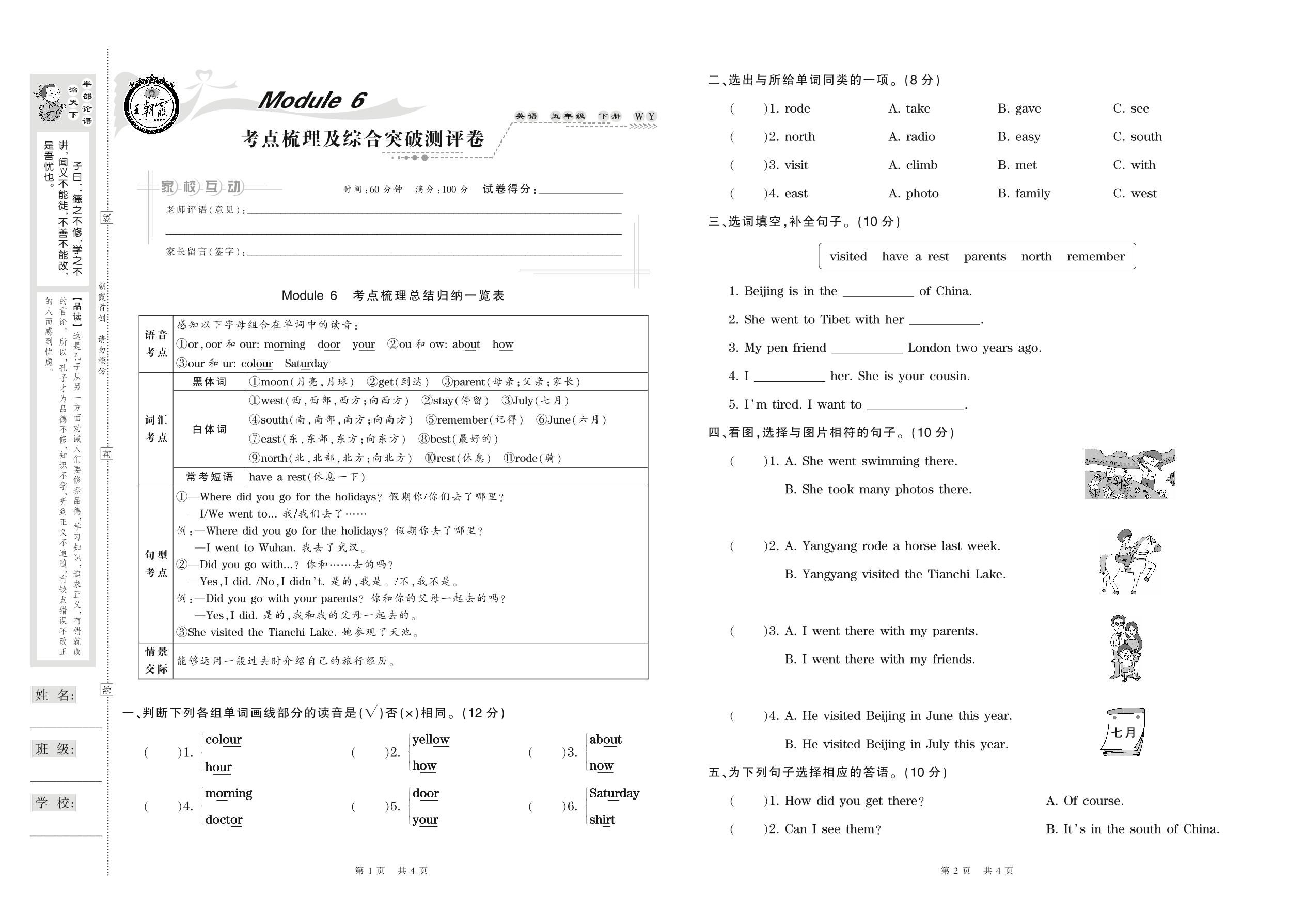 2021下册五年级英语外研版 Module 6 考点梳理及综合突破测评卷