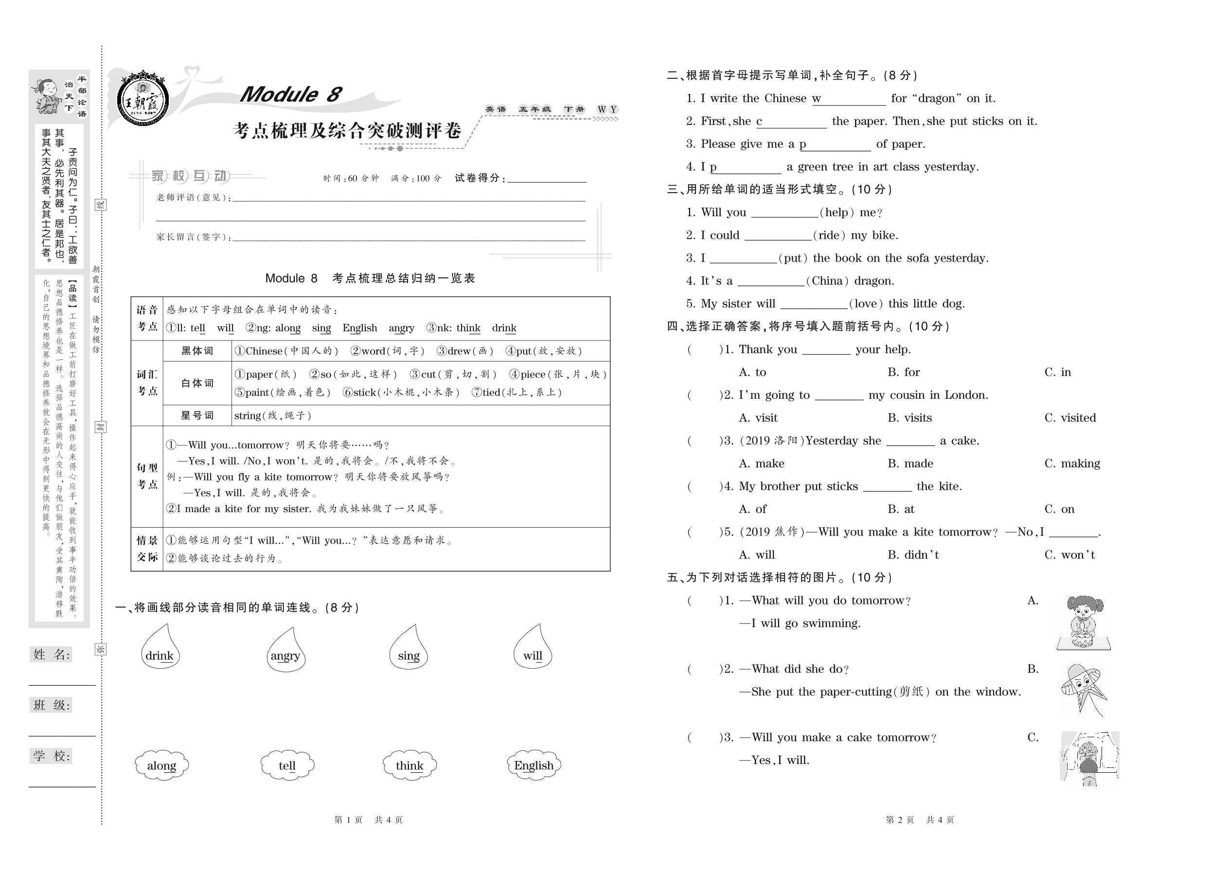 2021下册五年级英语外研版 Module 8 考点梳理及综合突破测评卷