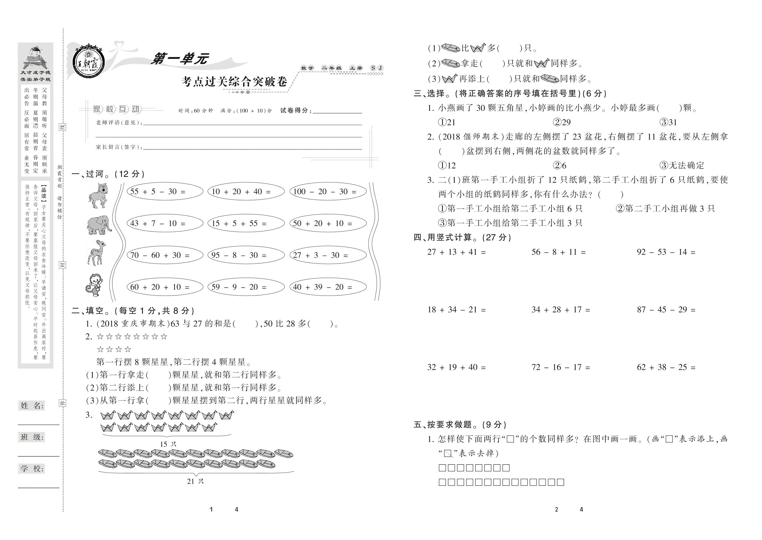 2020上册二年级数学苏教版 第一单元 考点过关综合突破卷