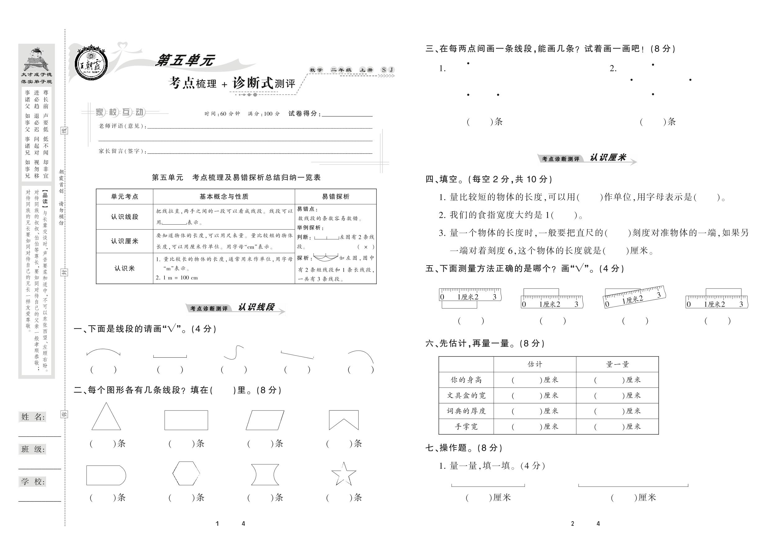 2020上册二年级数学苏教版 第五单元 考点梳理+诊断式测评