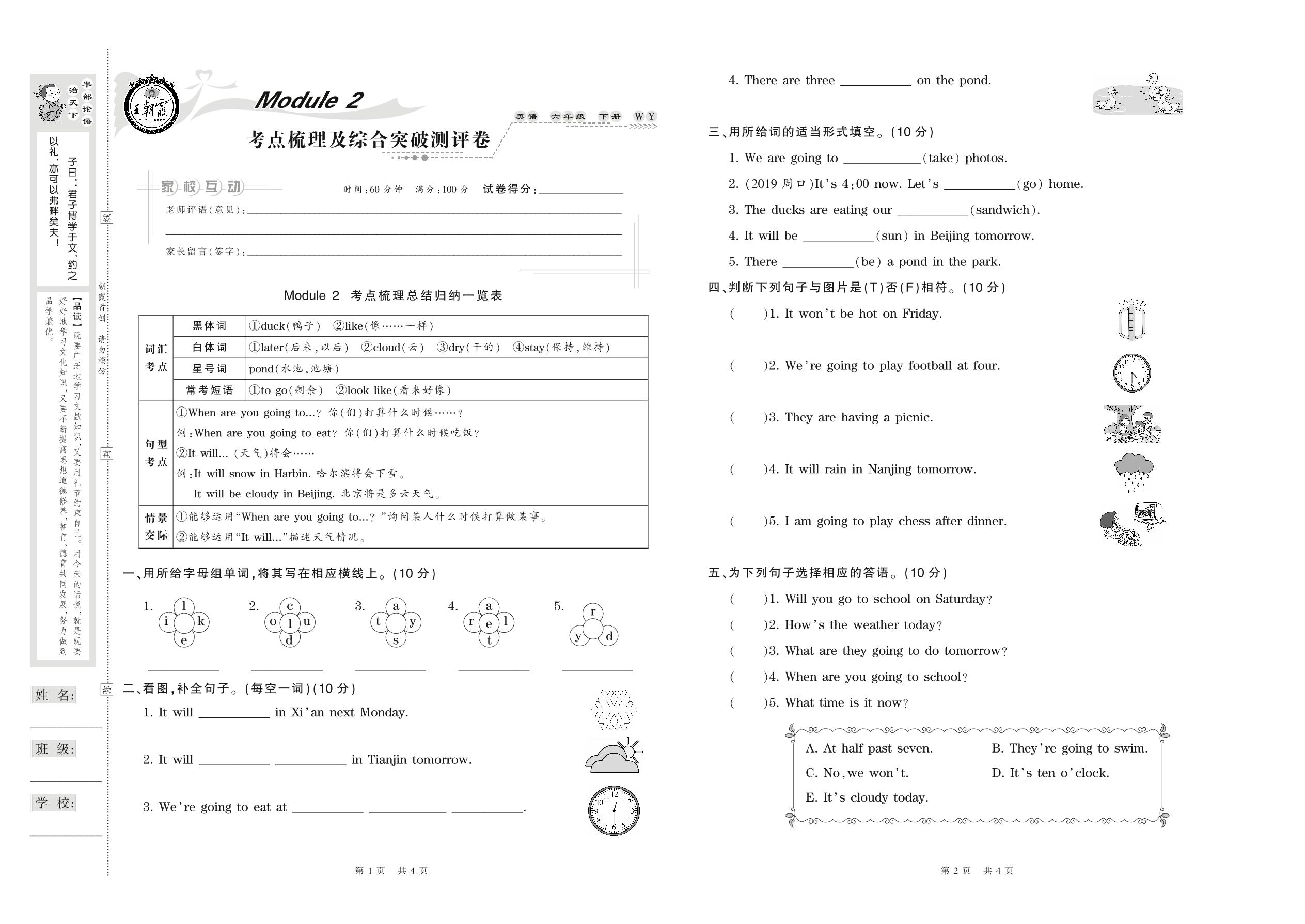 2021下册六年级英语外研版 Module 2 考点梳理及综合突破测评卷