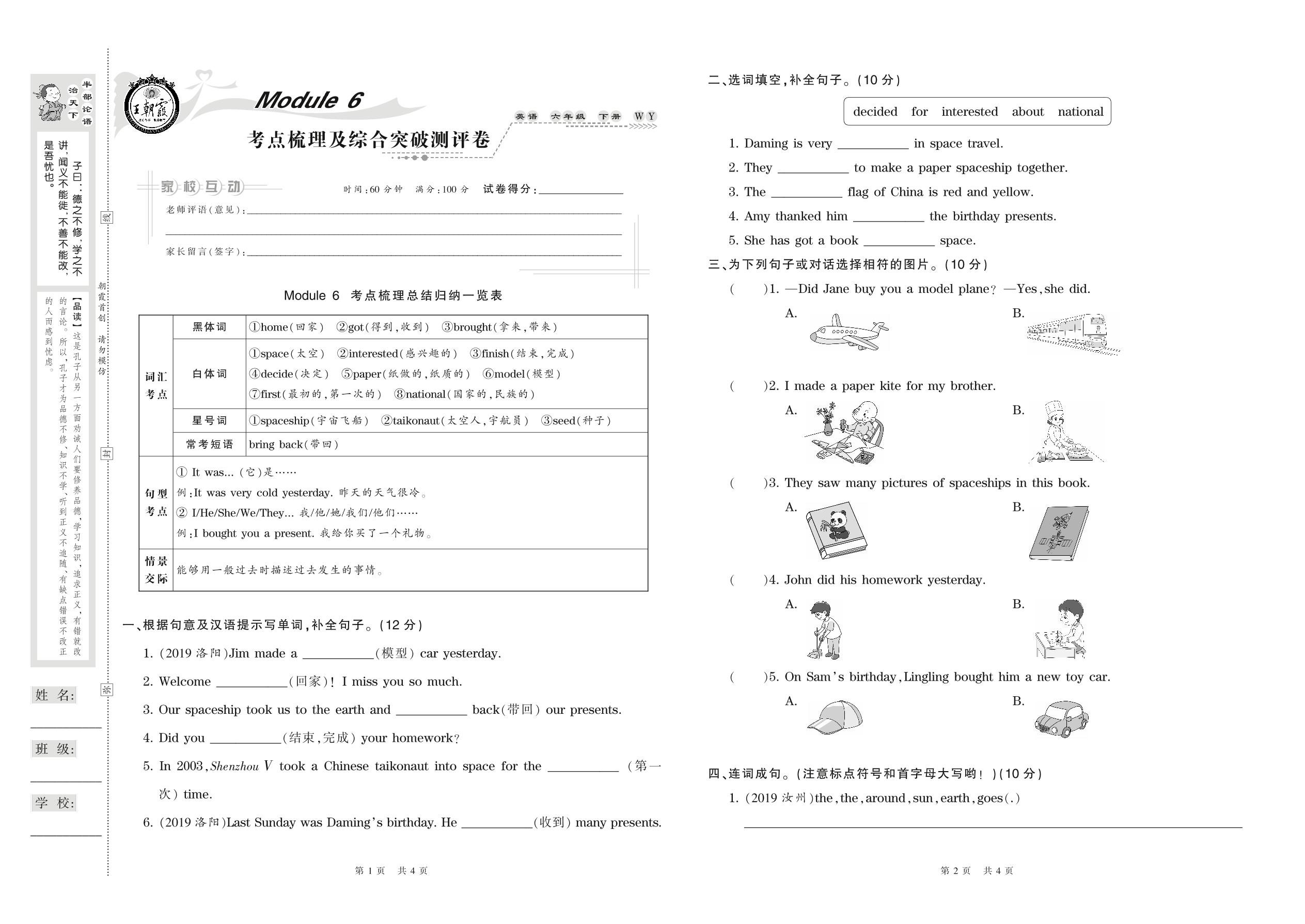 2021下册六年级英语外研版 Module 6 考点梳理及综合突破测评卷