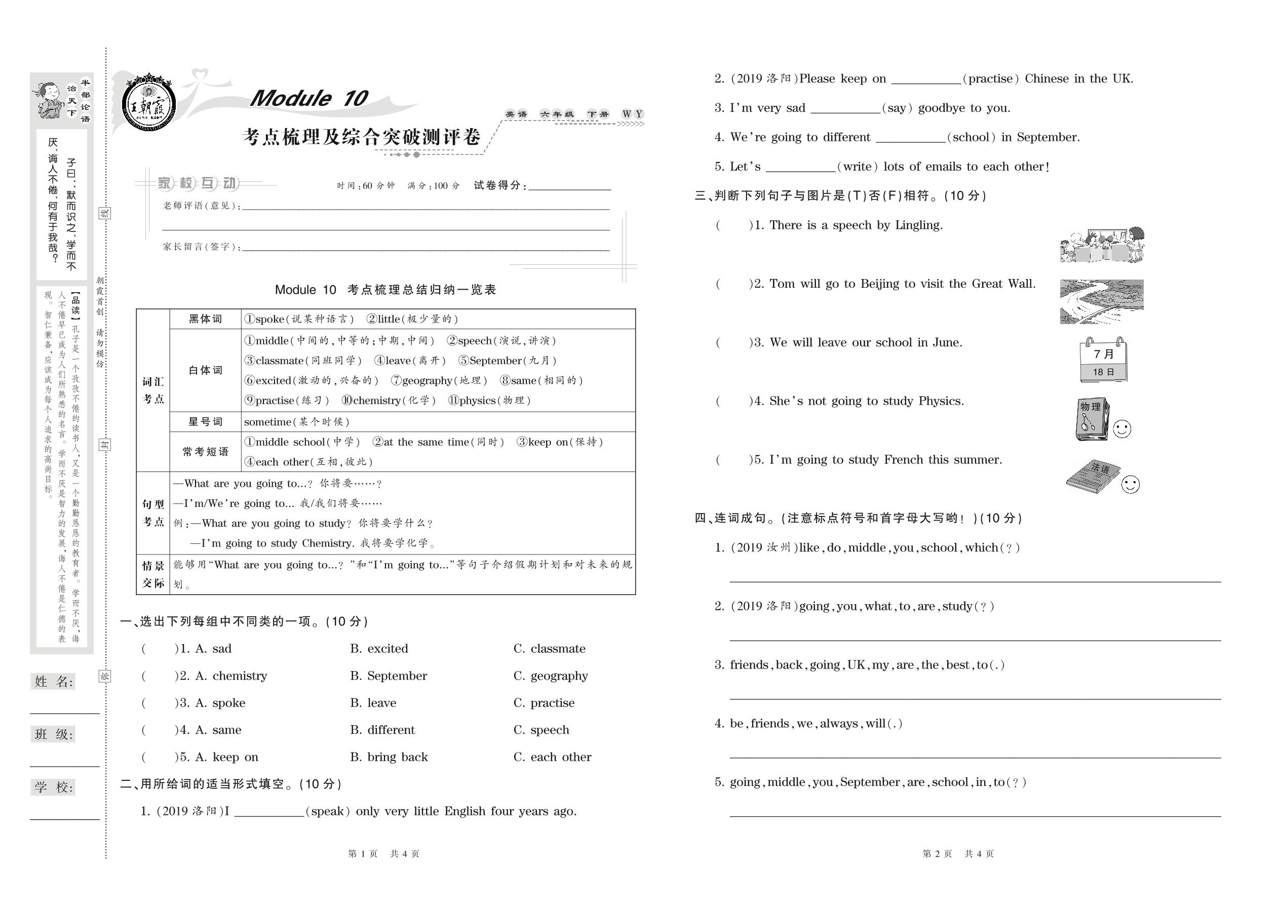 2021下册六年级英语外研版 Module 10 考点梳理及综合突破测评卷