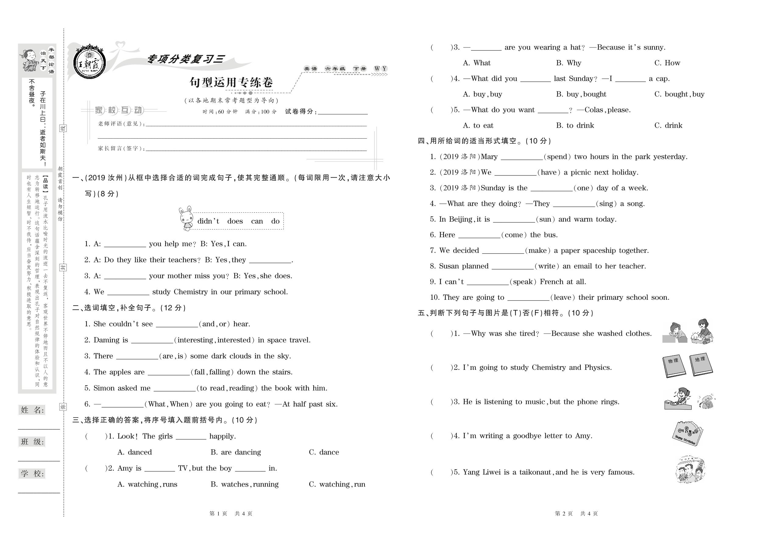 六年级英语外研版(三起始)下册专项卷