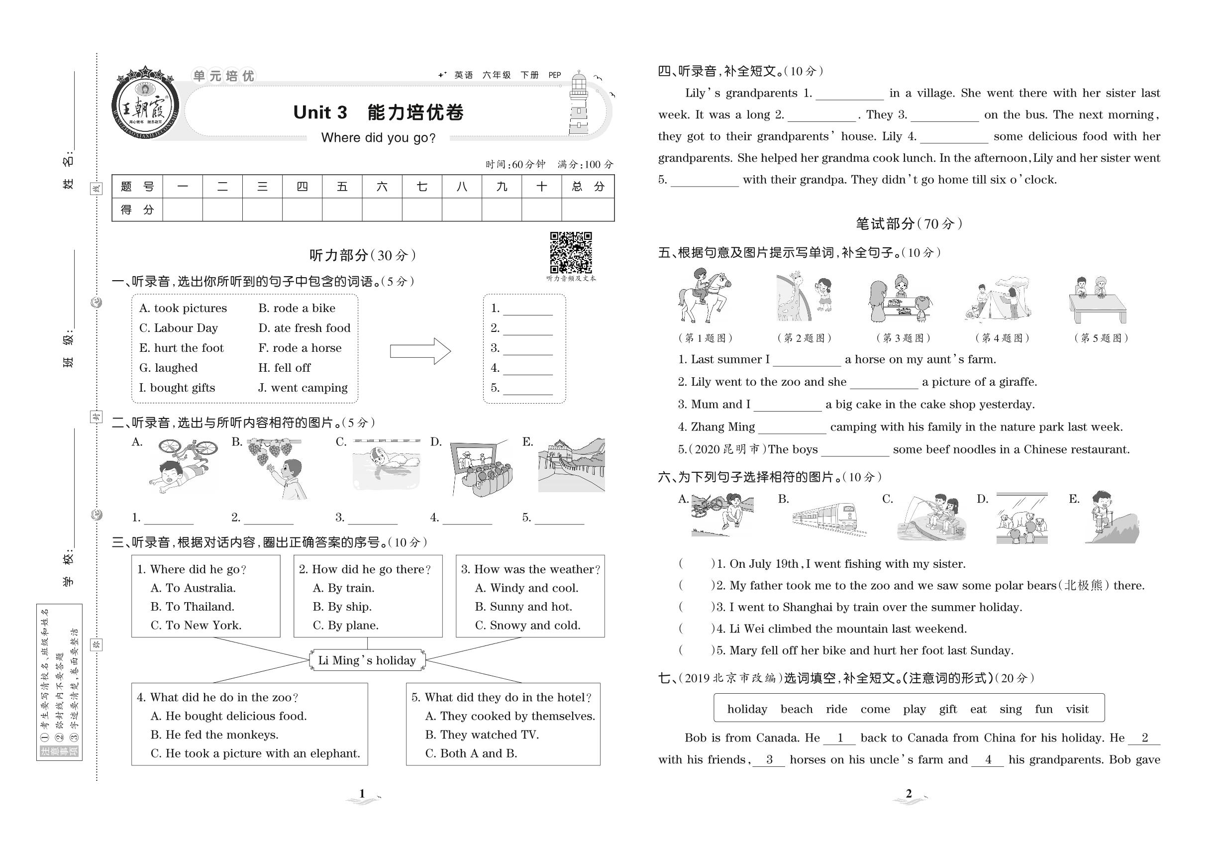 2021下册六年级英语PEP版 Unit 3 能力培优卷