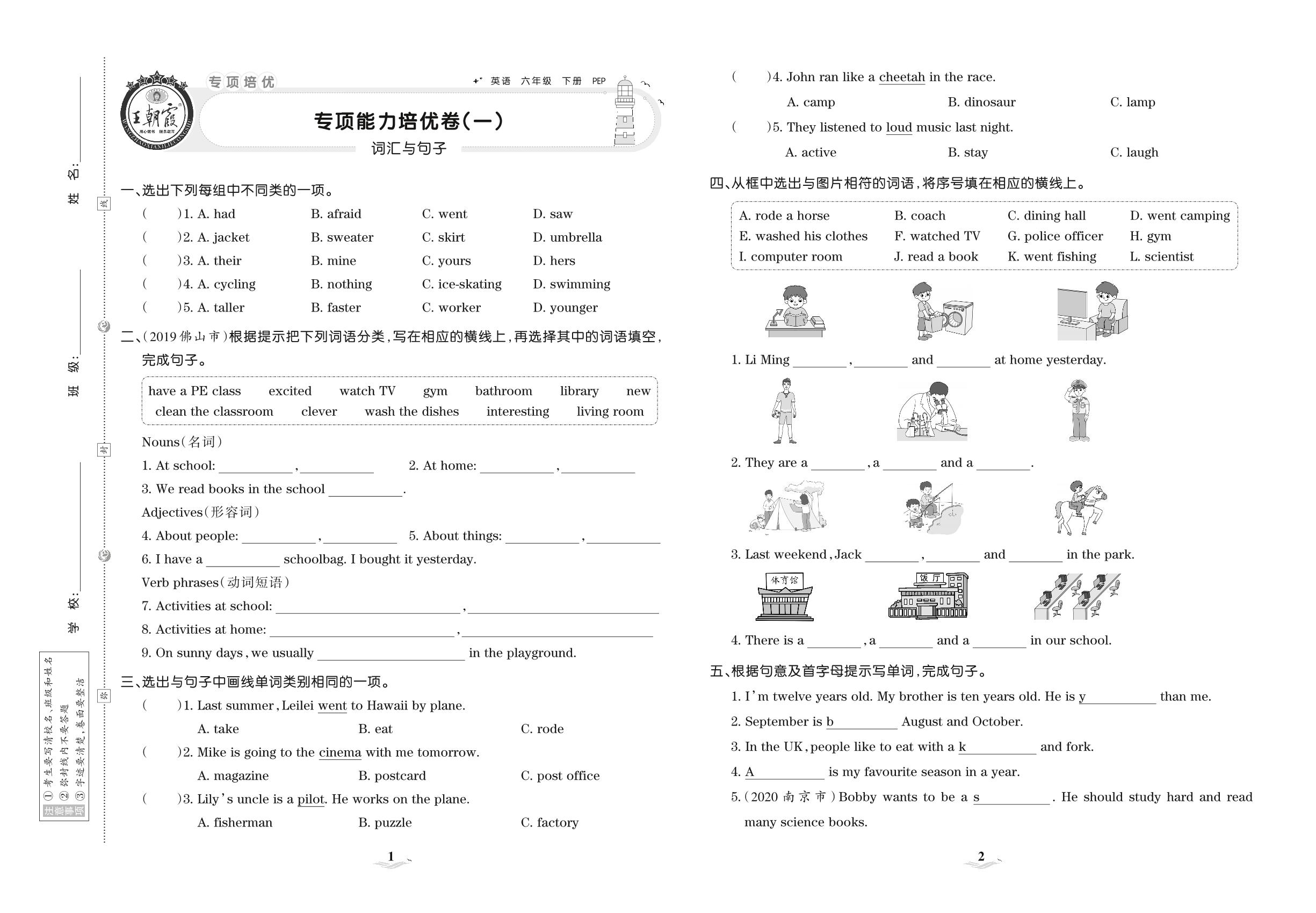 2021下册六年级英语PEP版 专项能力培优卷(一) 词汇与句子