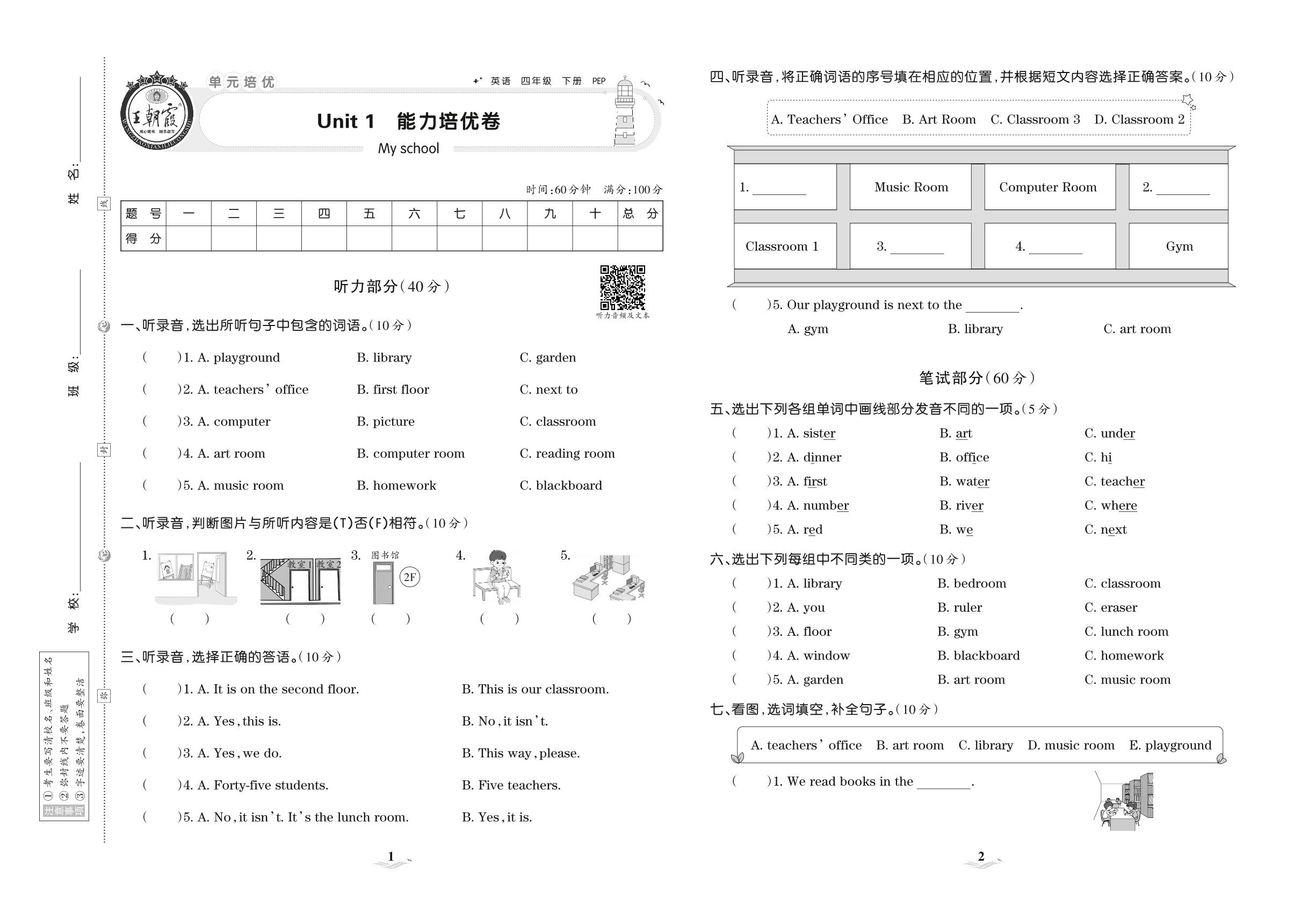 四年级英语人教PEP版(三起始)下册单元卷