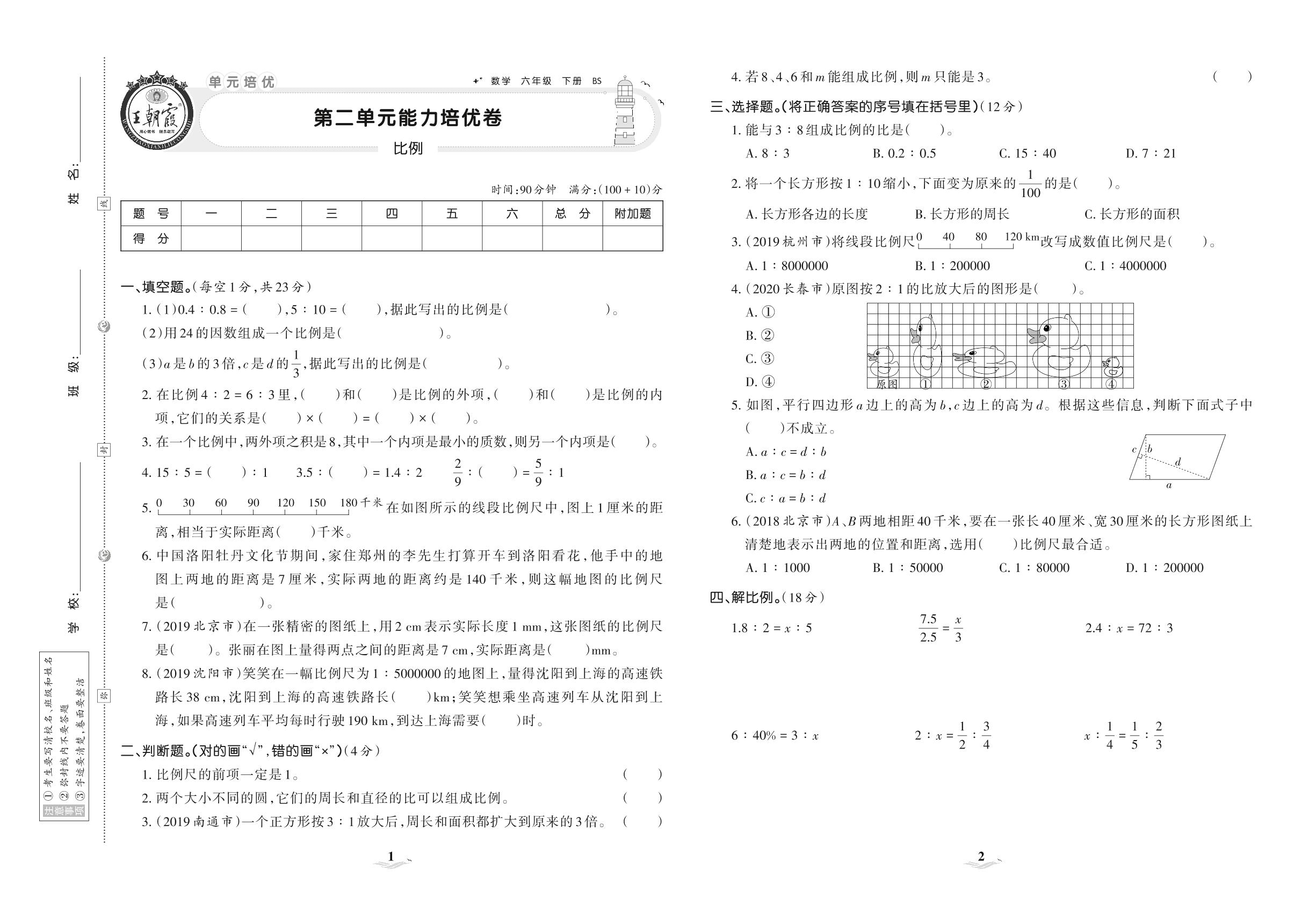 2021下册六年级数学北师版 第二单元 能力培优卷