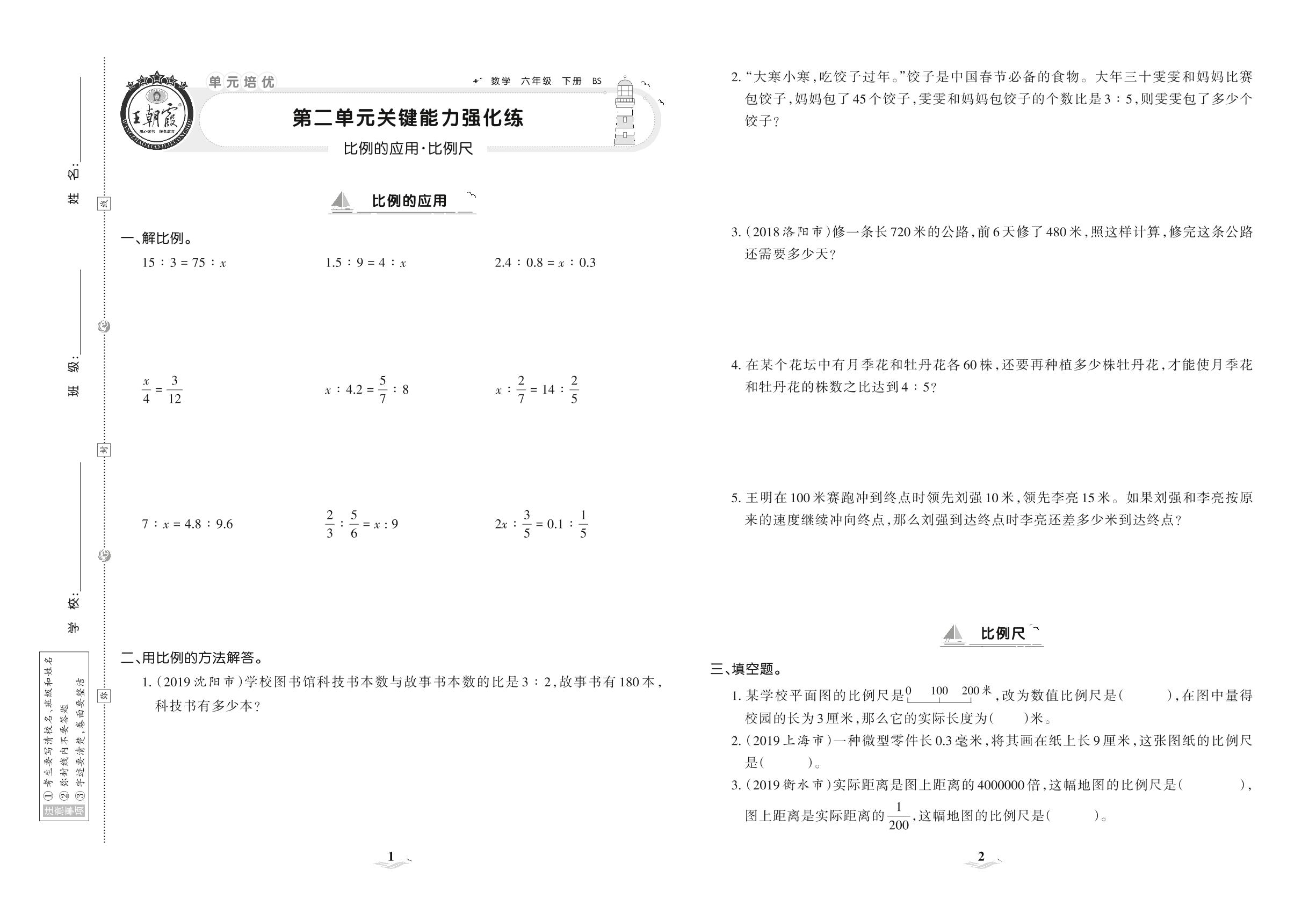 2021下册六年级数学北师版 第二单元 关键能力强化练