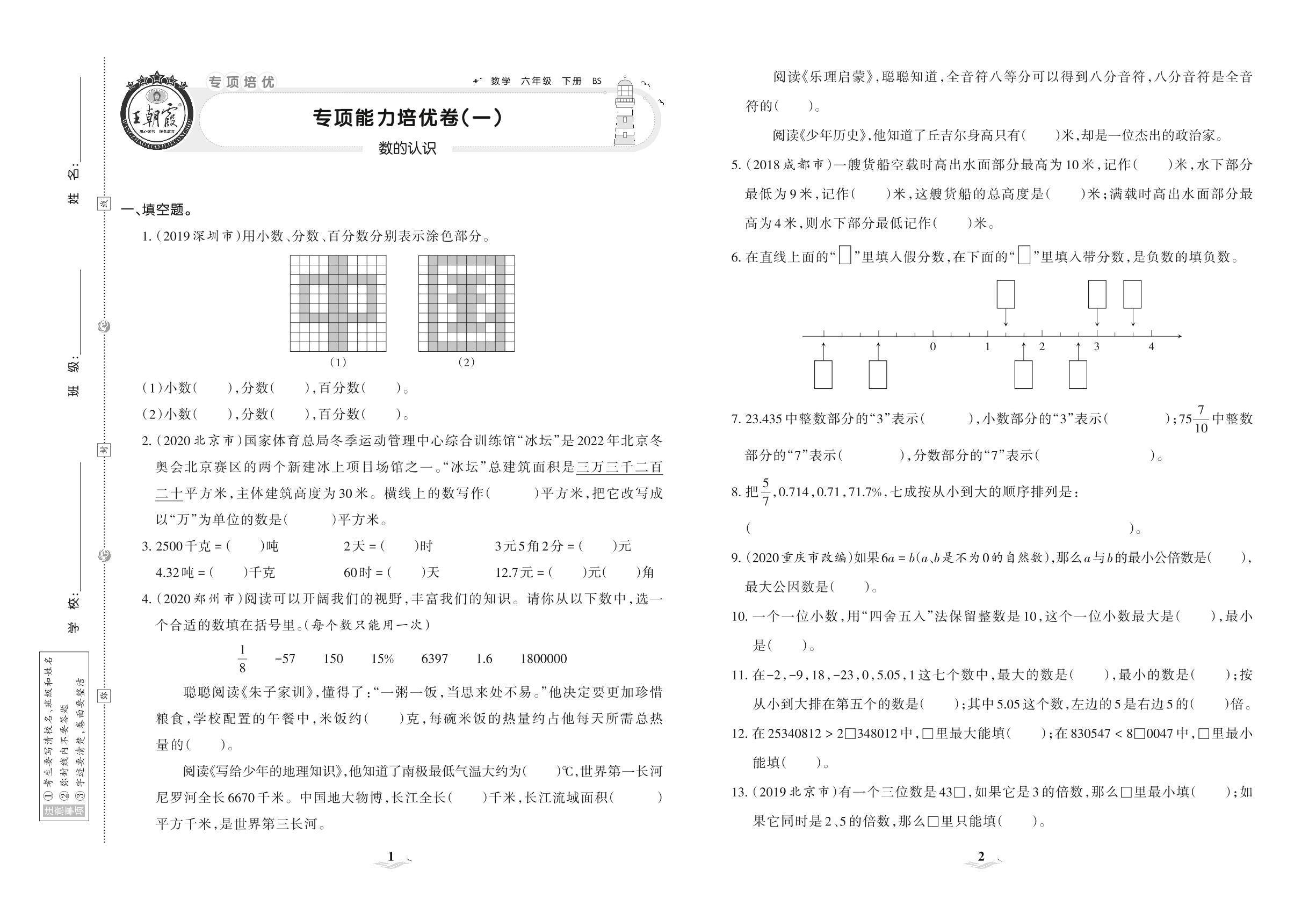 2021下册六年级数学北师版 专项能力培优卷(一) 数的认识