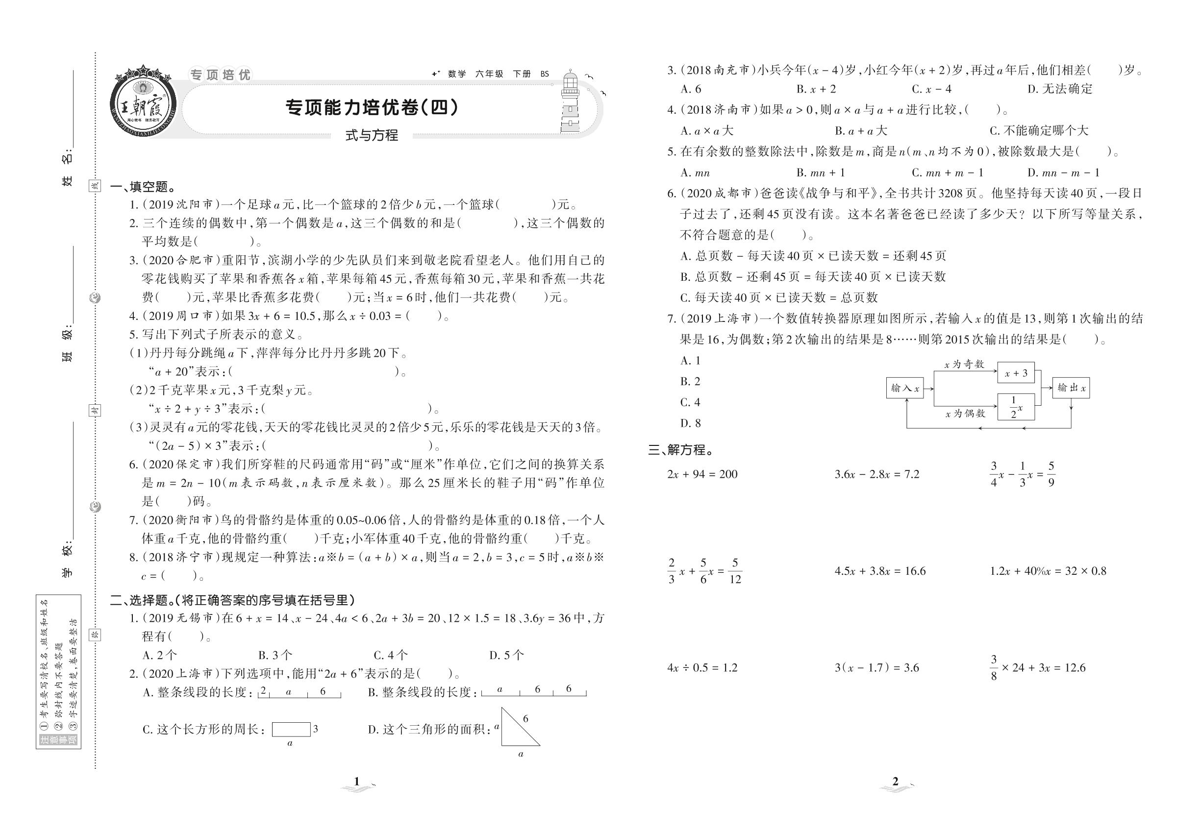 2021下册六年级数学北师版 专项能力培优卷(四) 式与方程