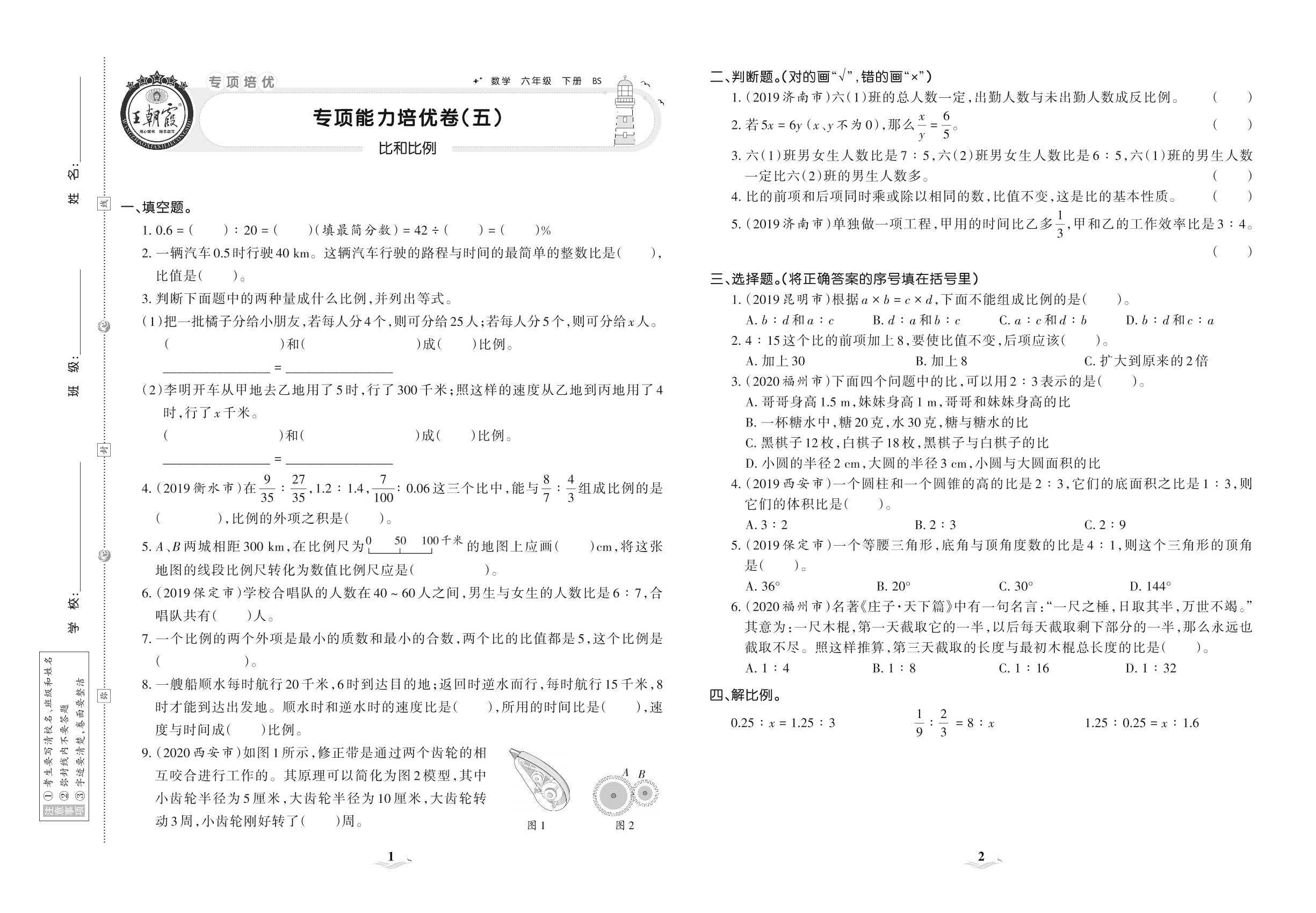 2021下册六年级数学北师版 专项能力培优卷(五) 比和比例