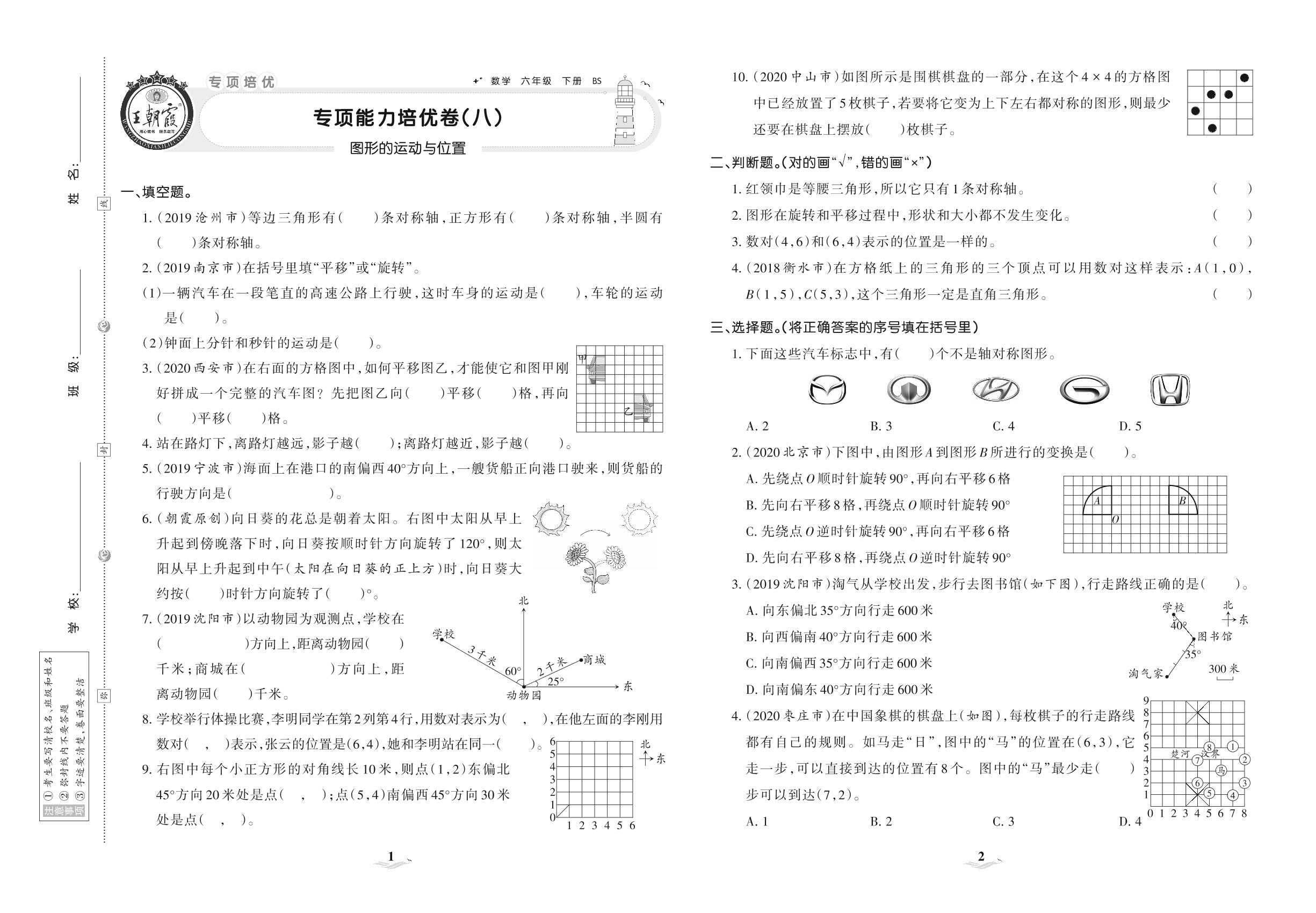 2021下册六年级数学北师版 专项能力培优卷(八) 图形的运动与位置