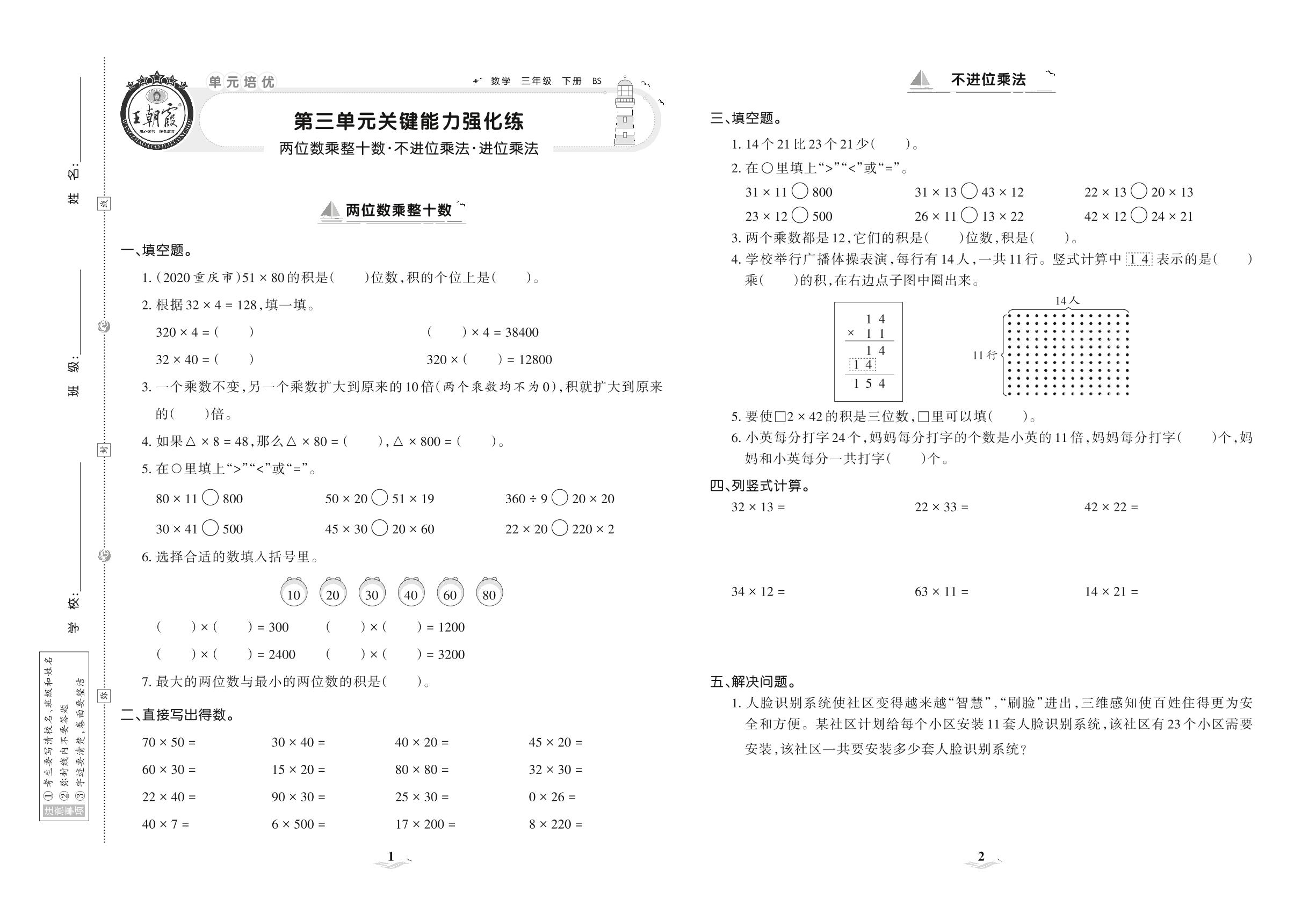 2021下册三年级数学北师版 第三单元 关键能力强化练