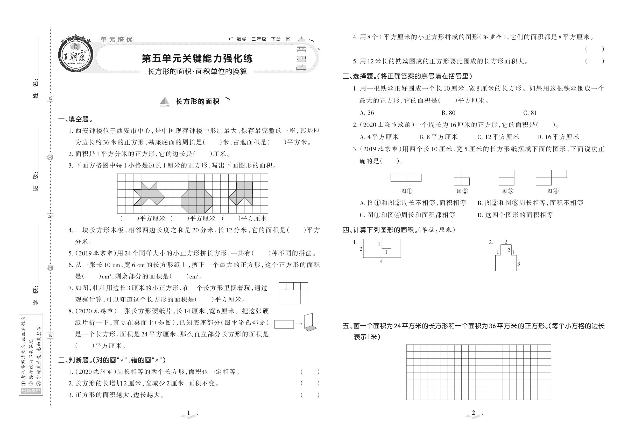 2021下册三年级数学北师版 第五单元 关键能力强化练