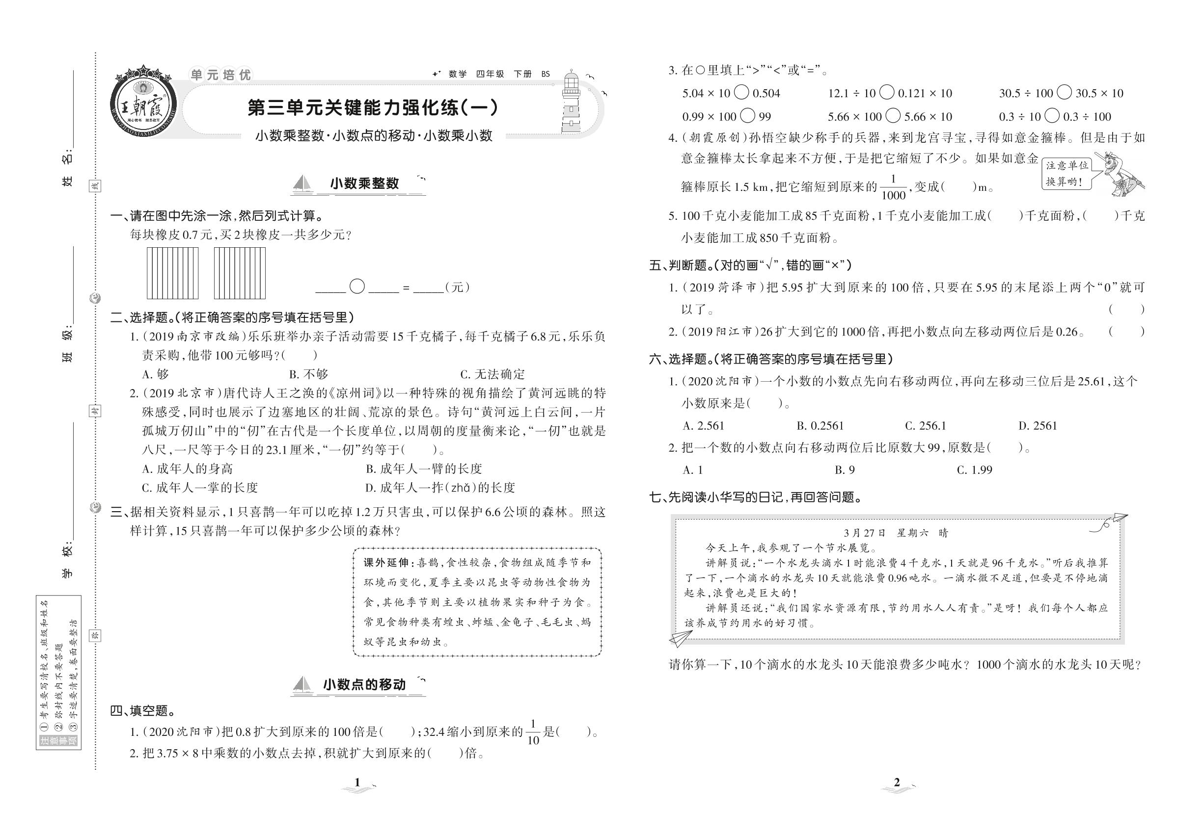 2021下册四年级数学北师版 第三单元 关键能力强化练(一)
