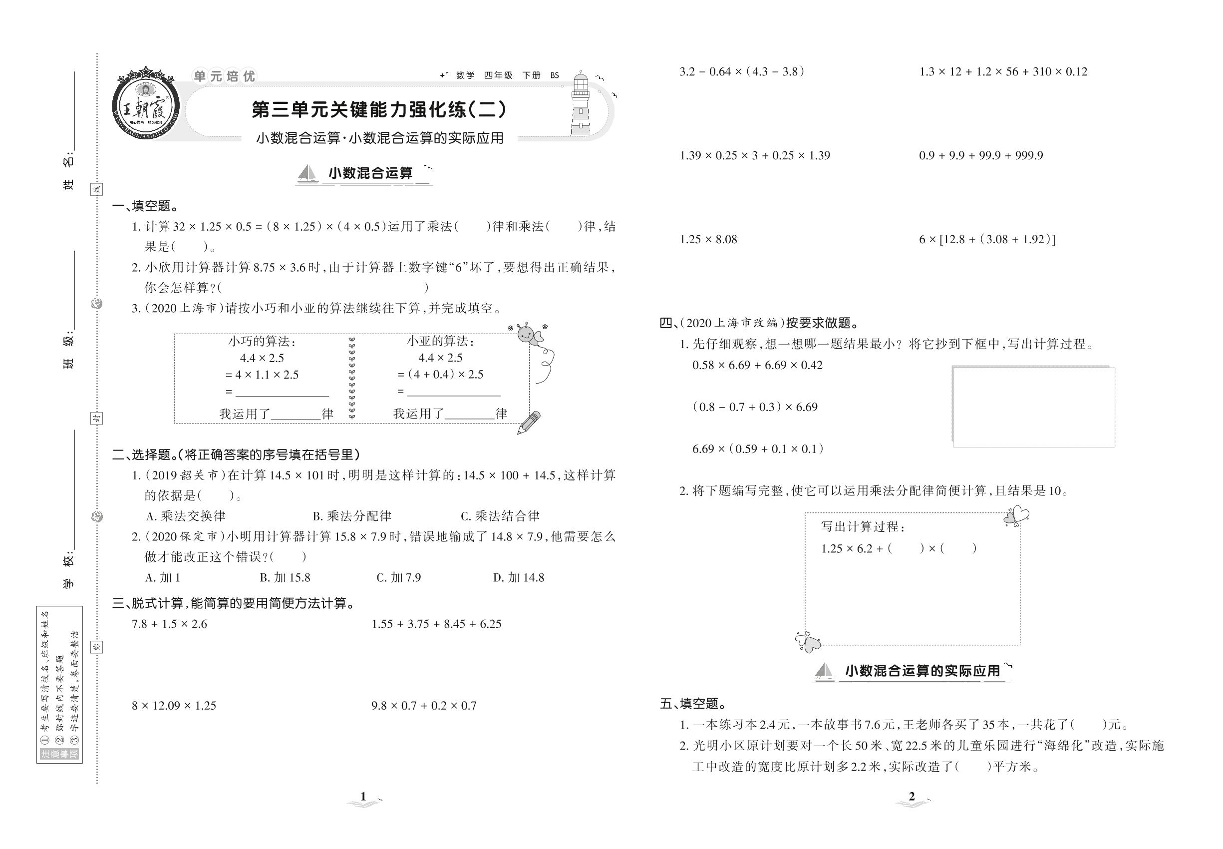 2021下册四年级数学北师版 第三单元 关键能力强化练(二)