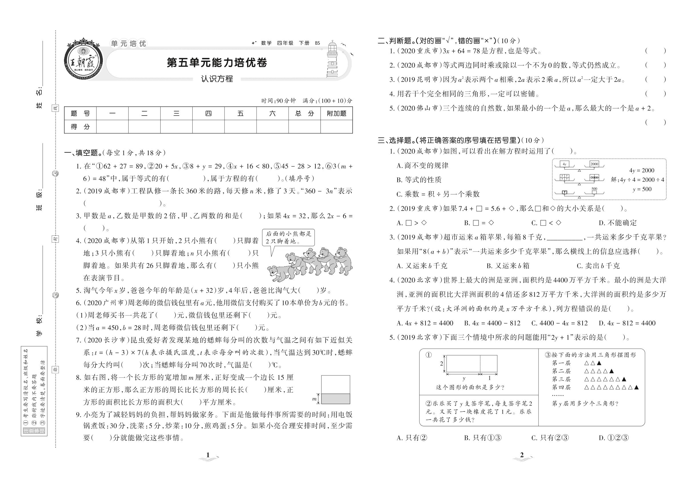 2021下册四年级数学北师版 第五单元 能力培优卷