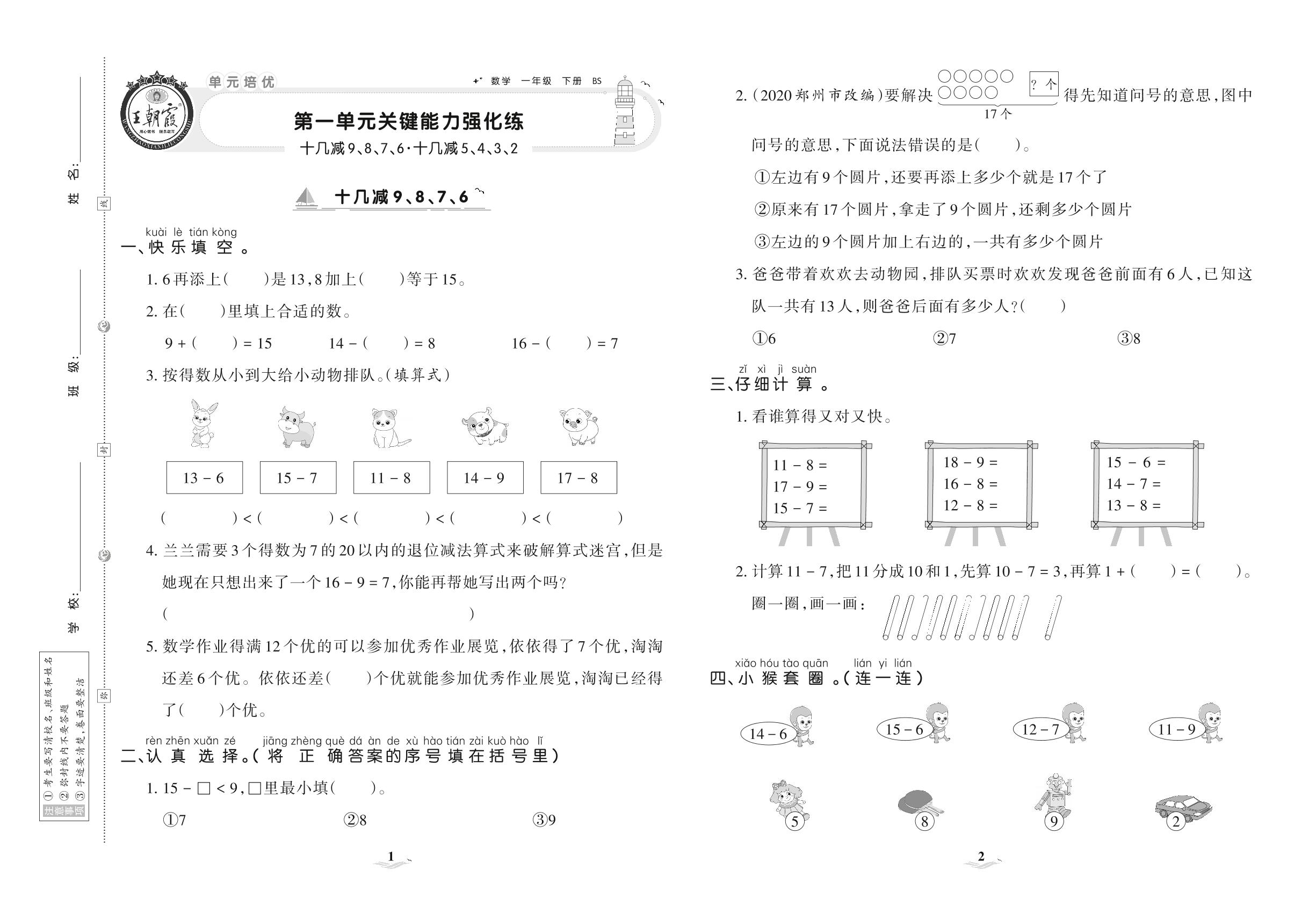 2021下册一年级数学北师版 第一单元 关键能力强化练