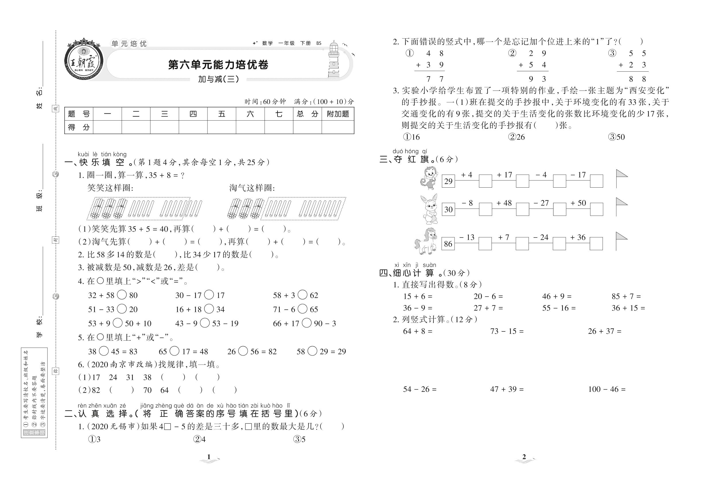 2021下册一年级数学北师版 第六单元 能力培优卷