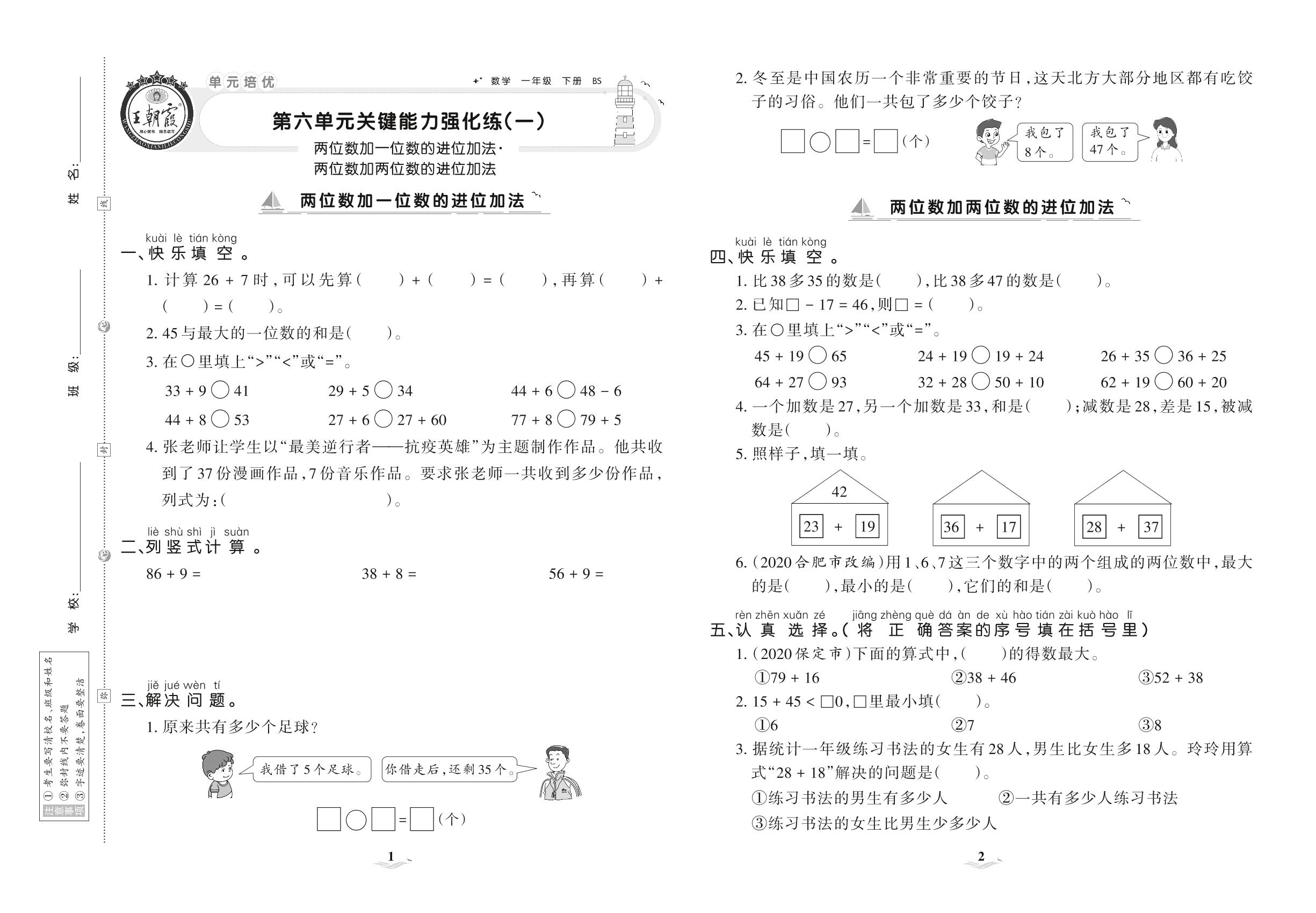 2021下册一年级数学北师版 第六单元 关键能力强化练(一)