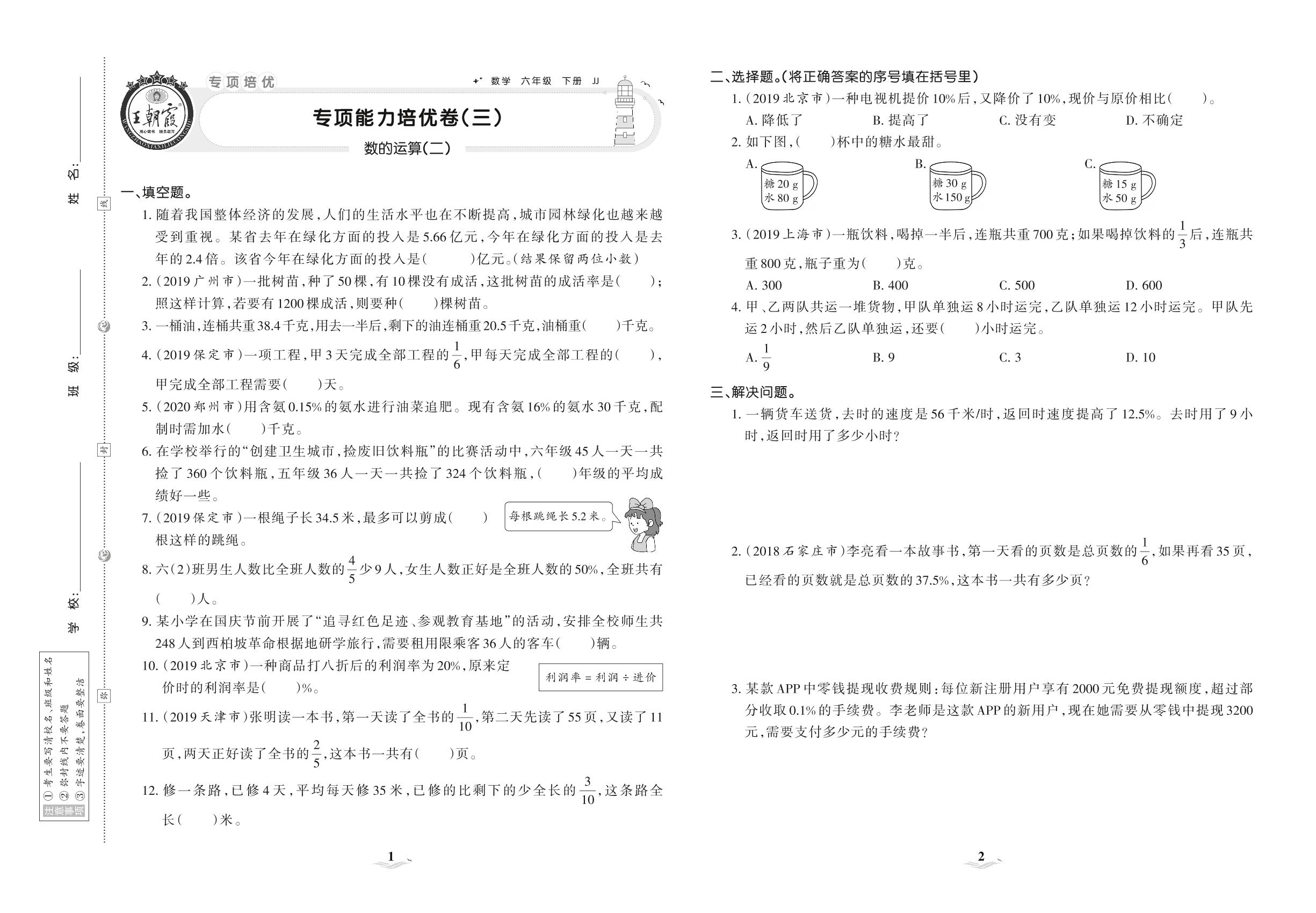 2021下册六年级数学冀教版 专项能力培优卷(三) 数的运算(二)