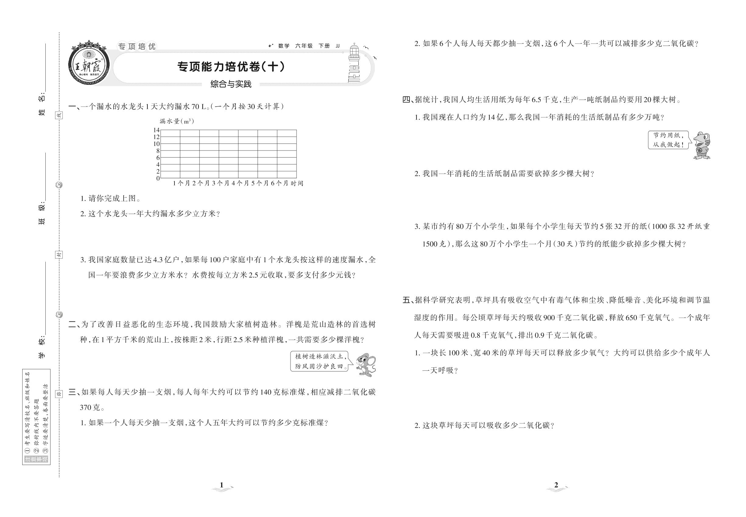 2021下册六年级数学冀教版 专项能力培优卷(十) 综合与实践