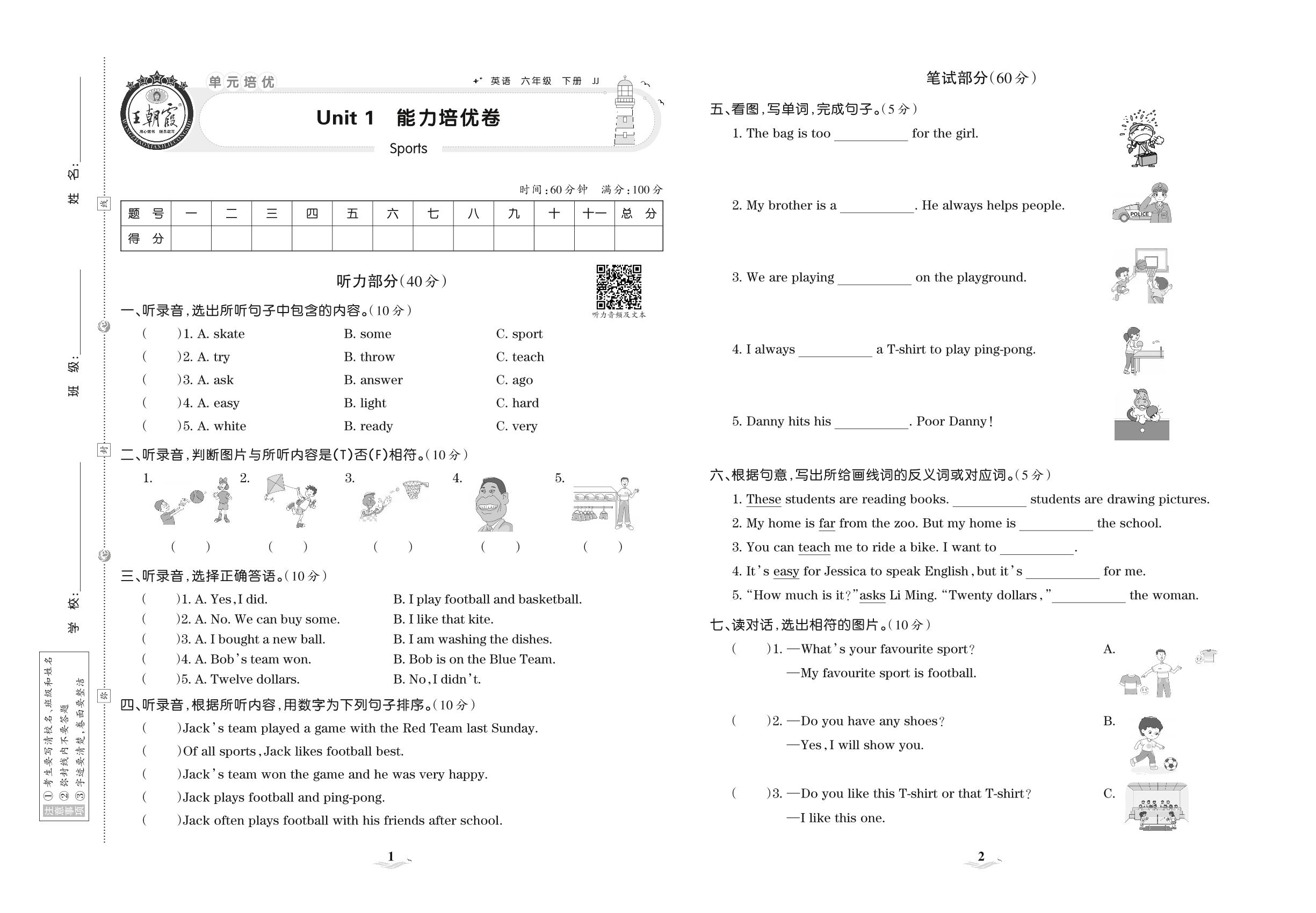 六年级英语冀教版下册单元卷