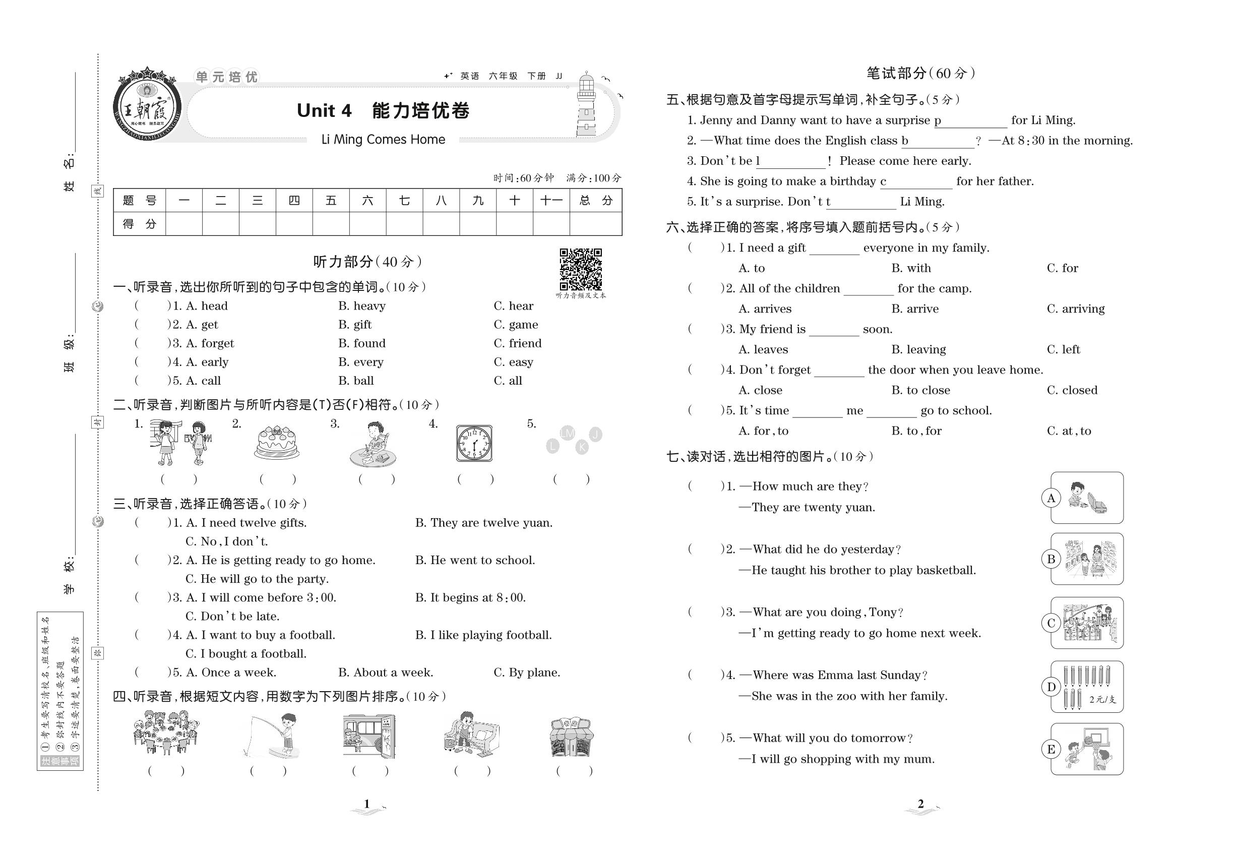 2021下册六年级英语冀教版 Unit 4 能力培优卷