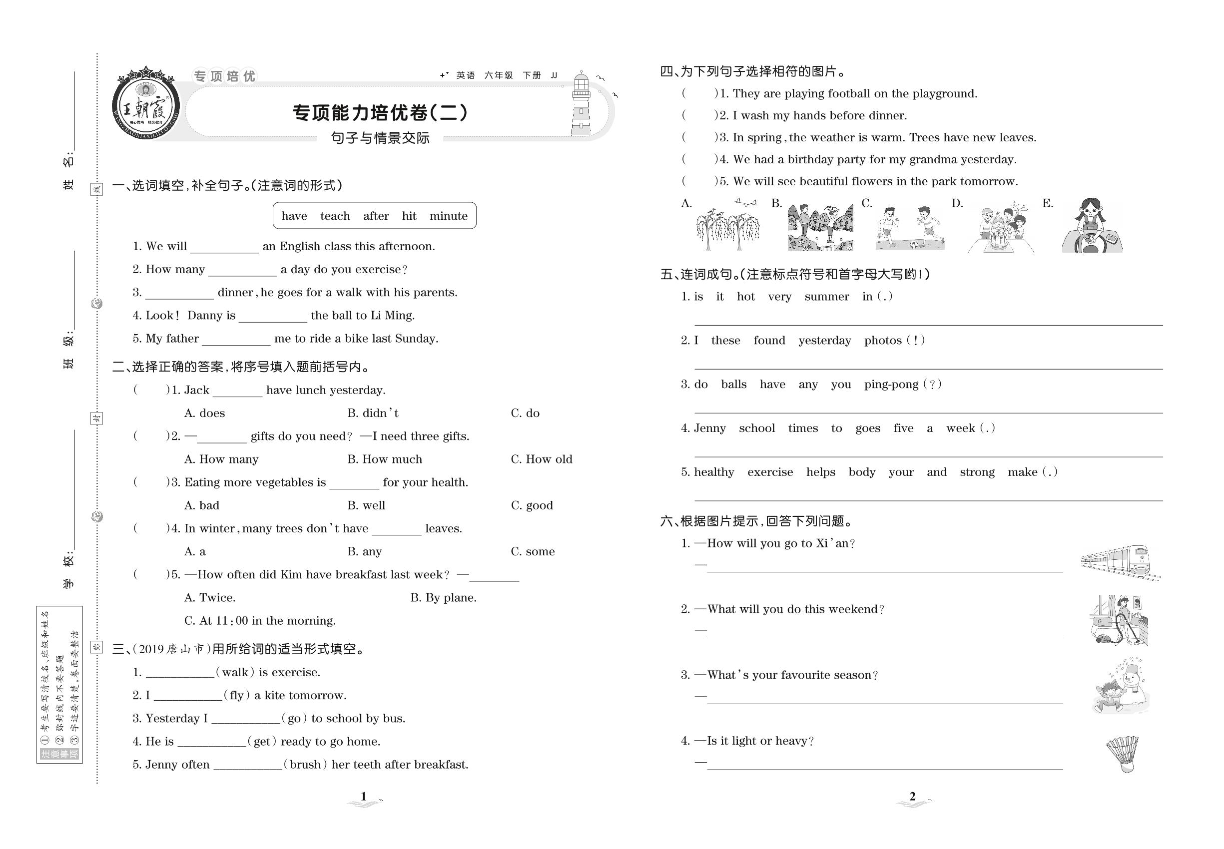 2021下册六年级英语冀教版 专项能力培优卷(二) 句子与情景交际