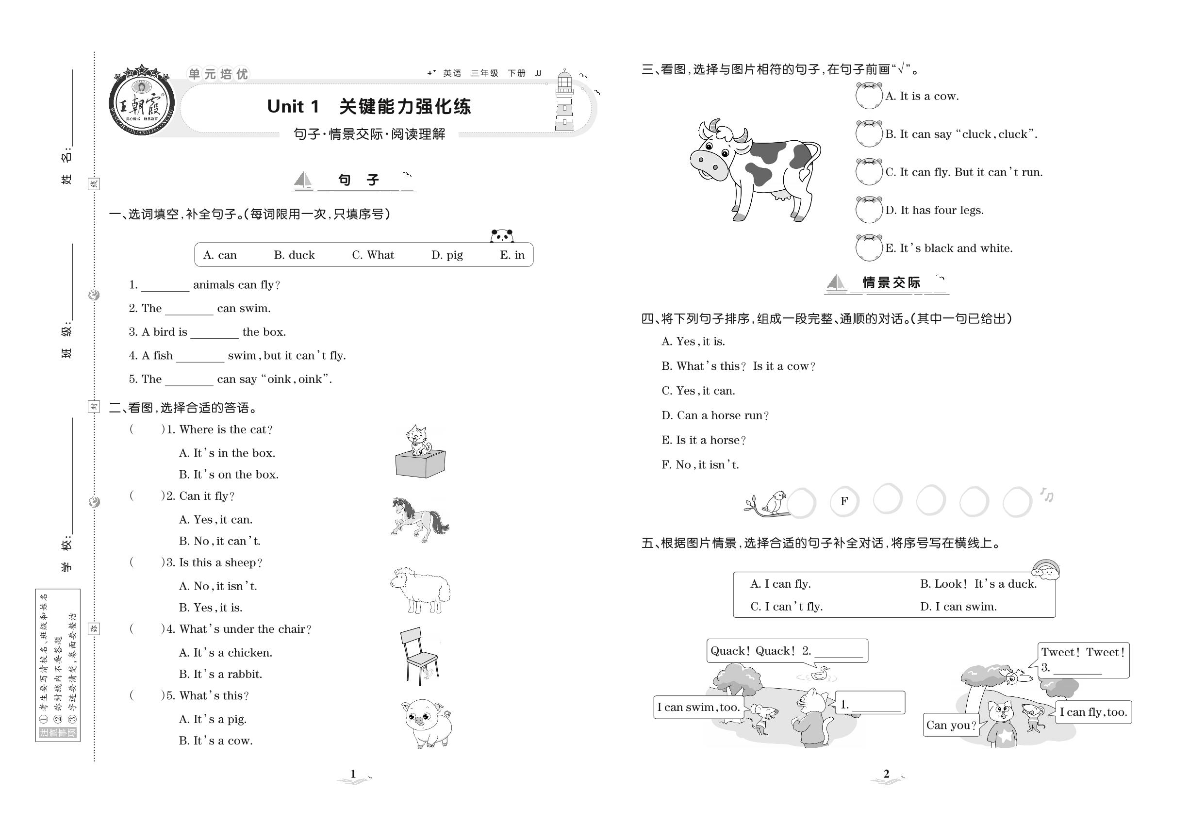 2021下册三年级英语冀教版 Unit 1 关键能力强化练