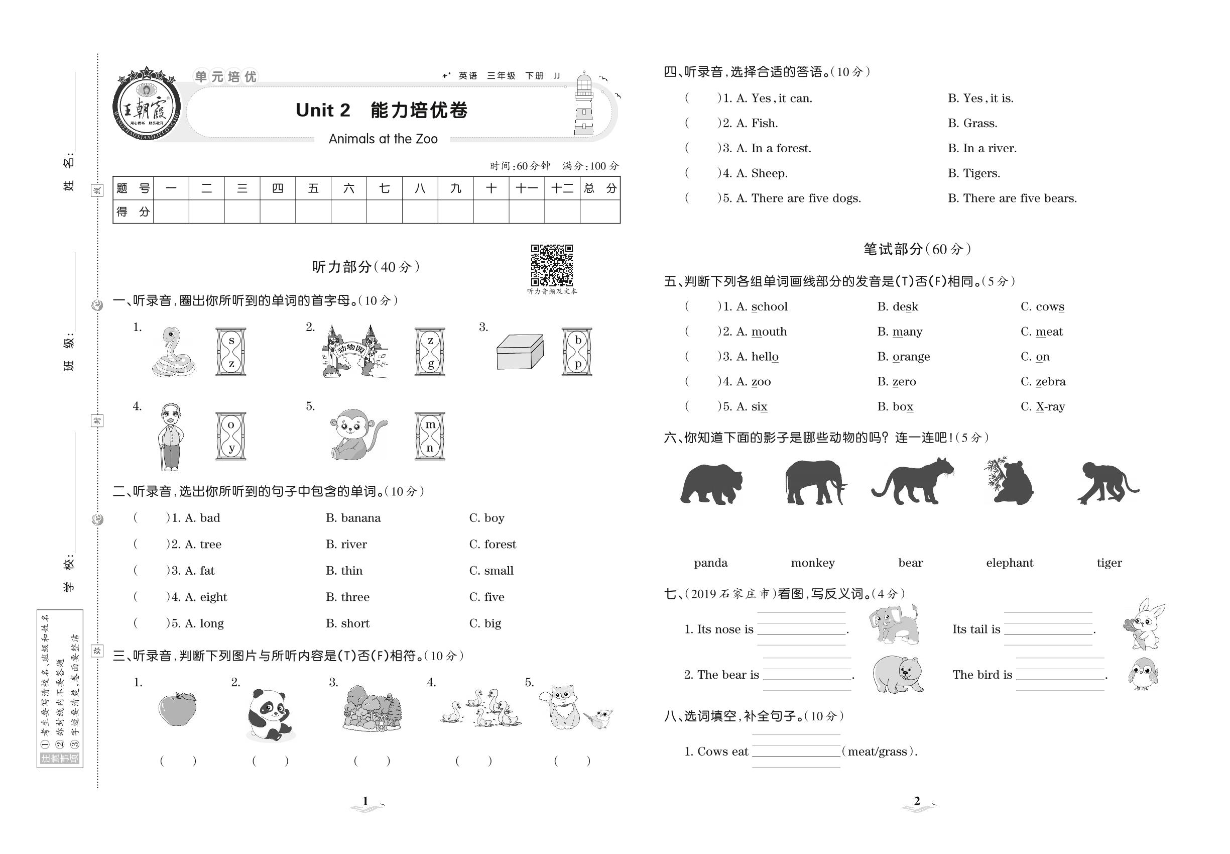 2021下册三年级英语冀教版 Unit 2 能力培优卷