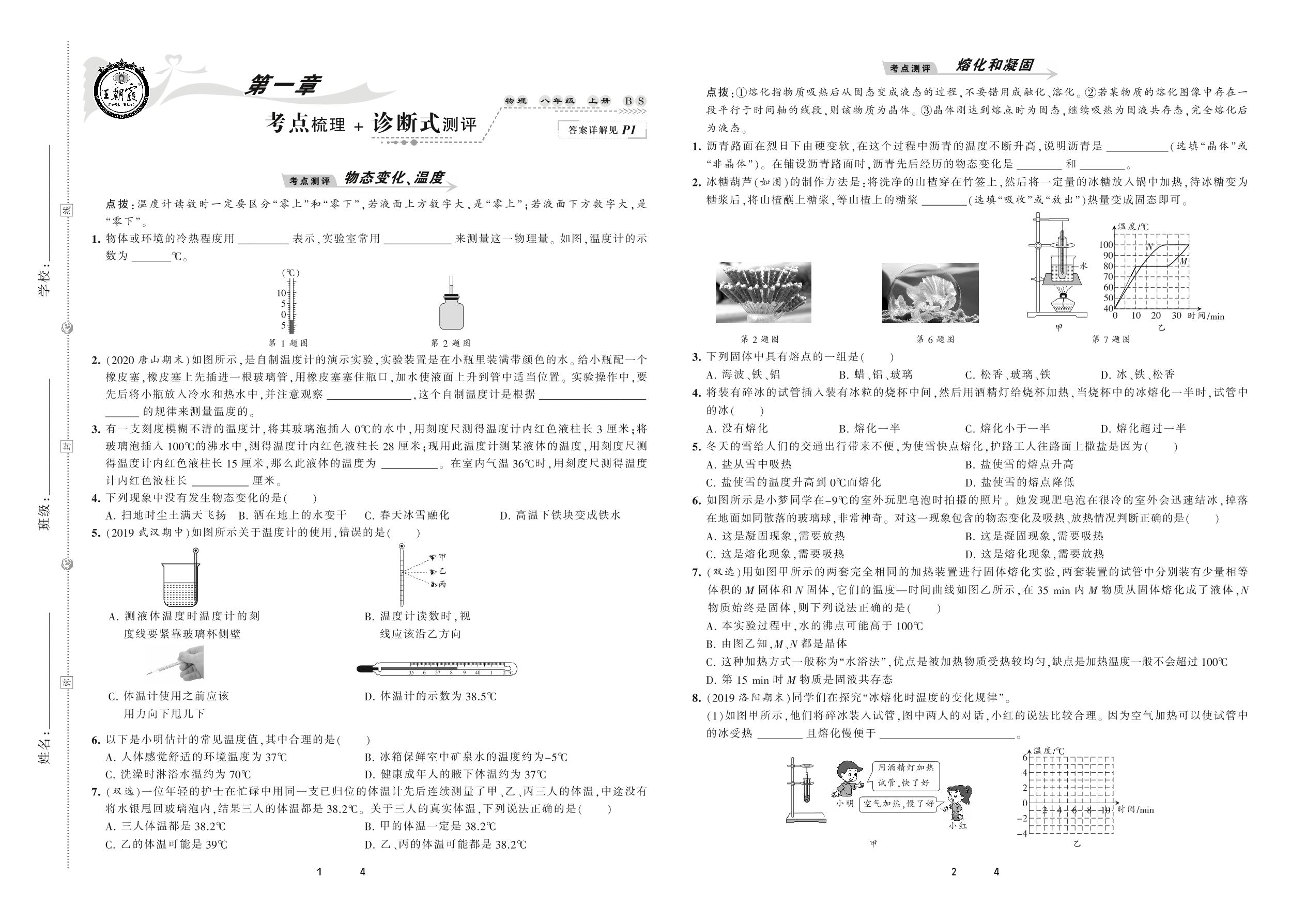 2020上册八年级物理北师版 第一章 考点梳理 + 诊断式测评