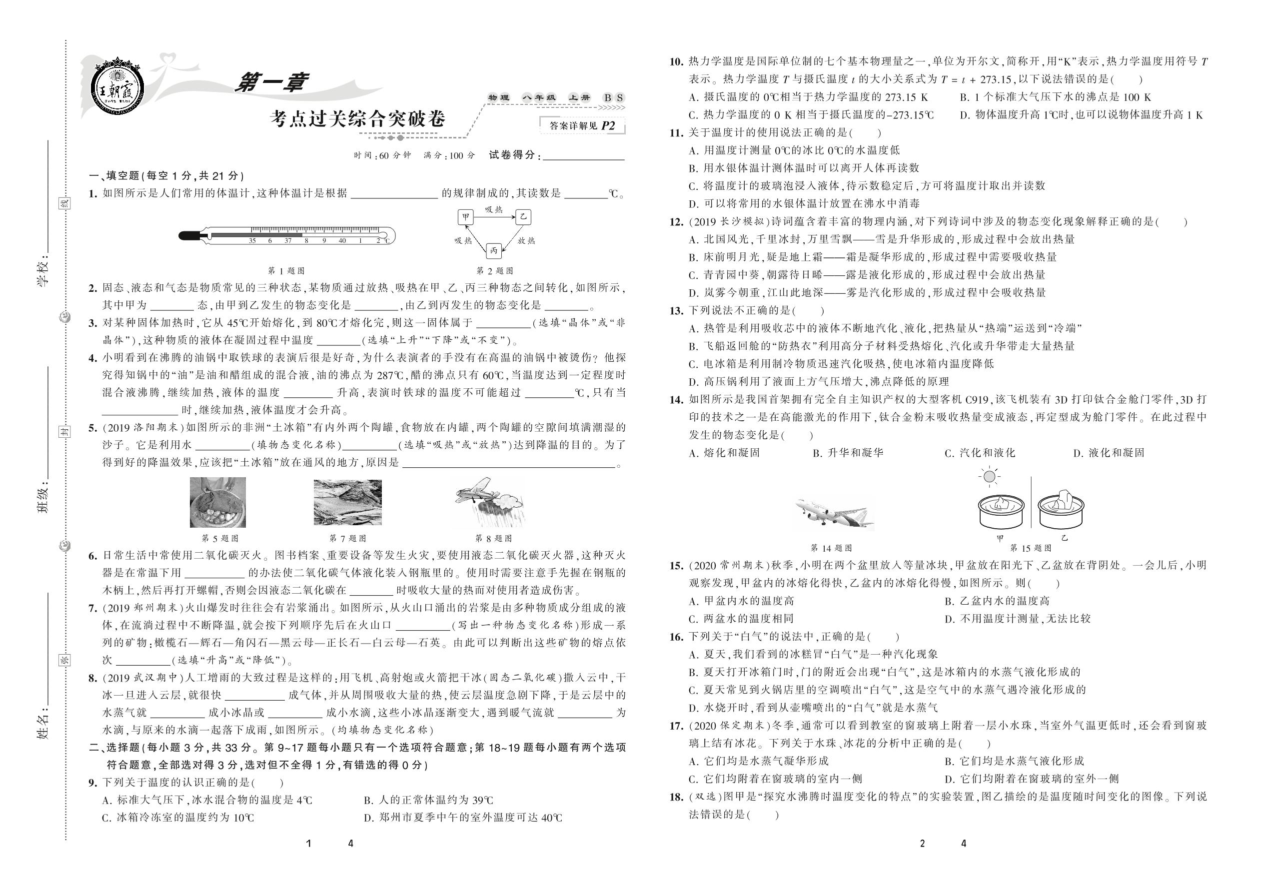 2020上册八年级物理北师版 第一章 考点过关综合突破卷