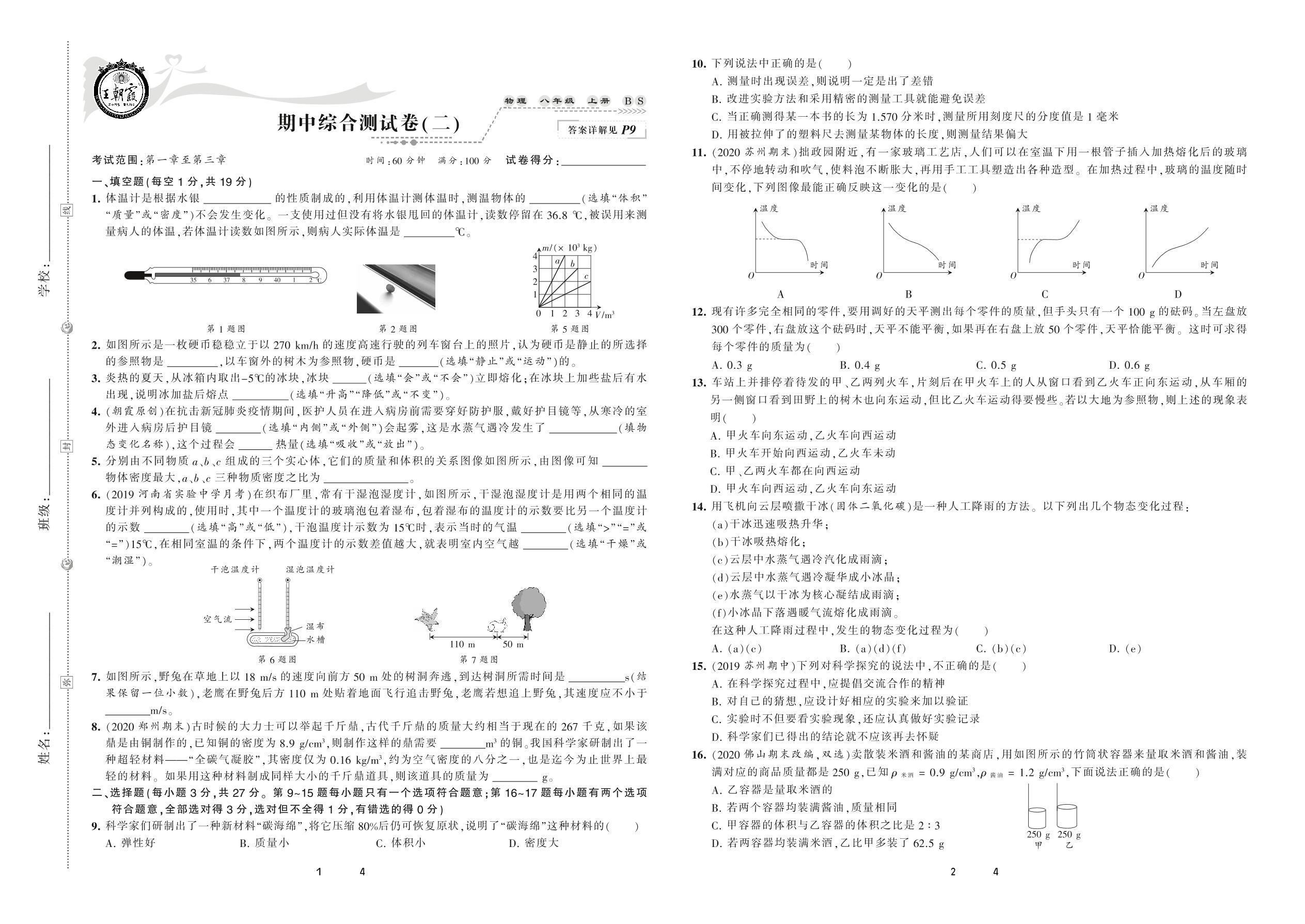 2020上册八年级物理北师版 期中综合测试卷(二)