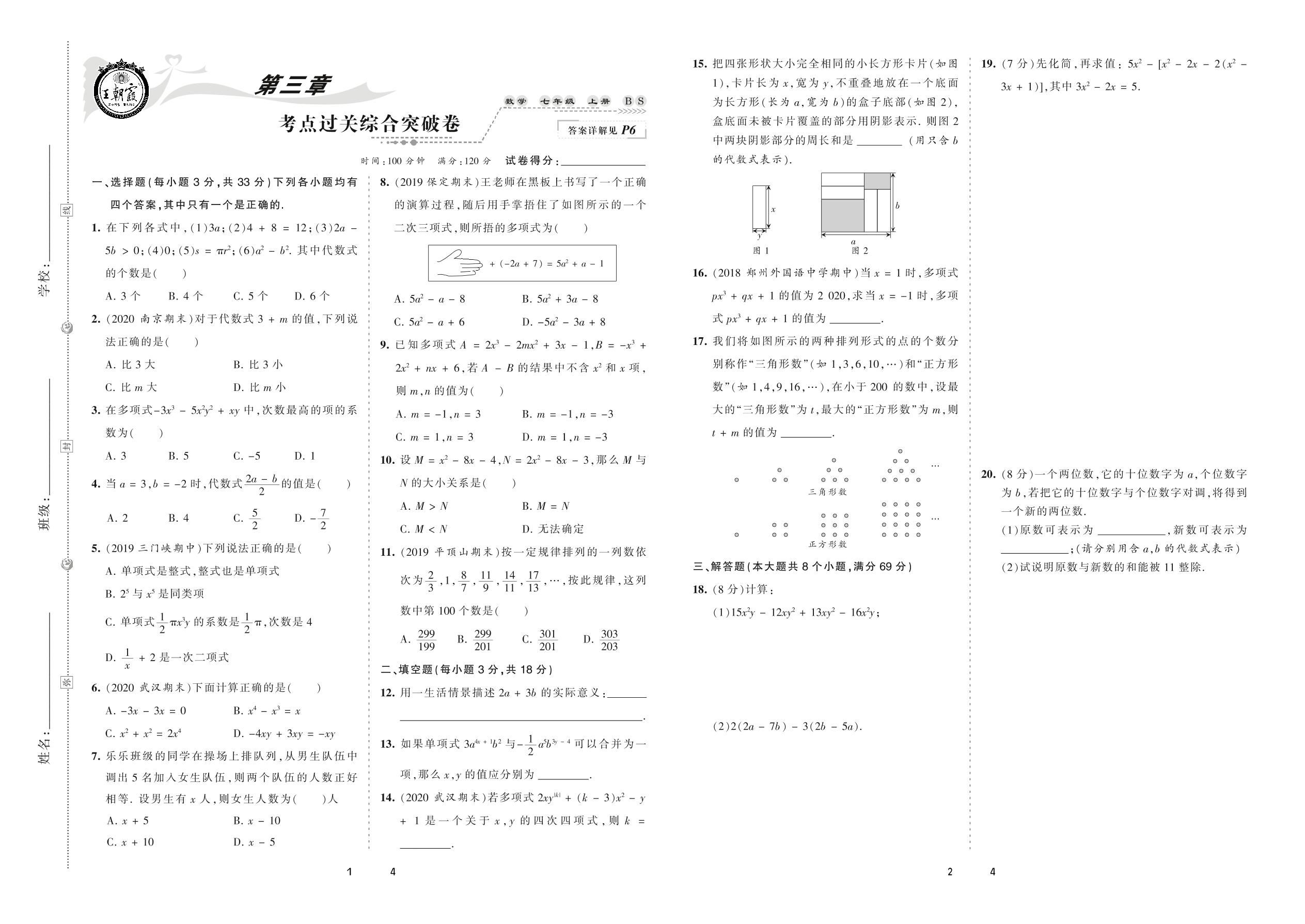 2020上册七年级数学北师版 第三章 考点过关综合突破卷