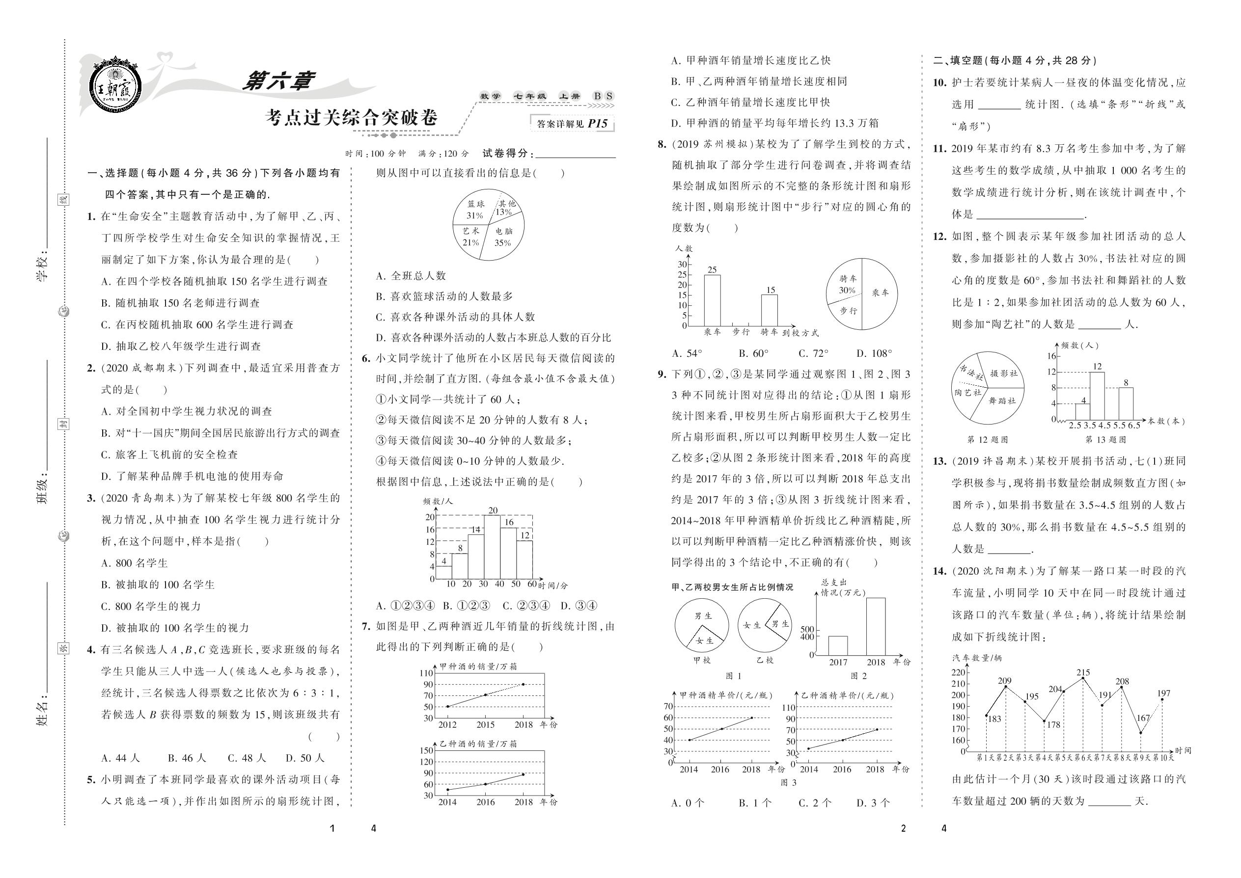 2020上册七年级数学北师版 第六章 考点过关综合突破卷