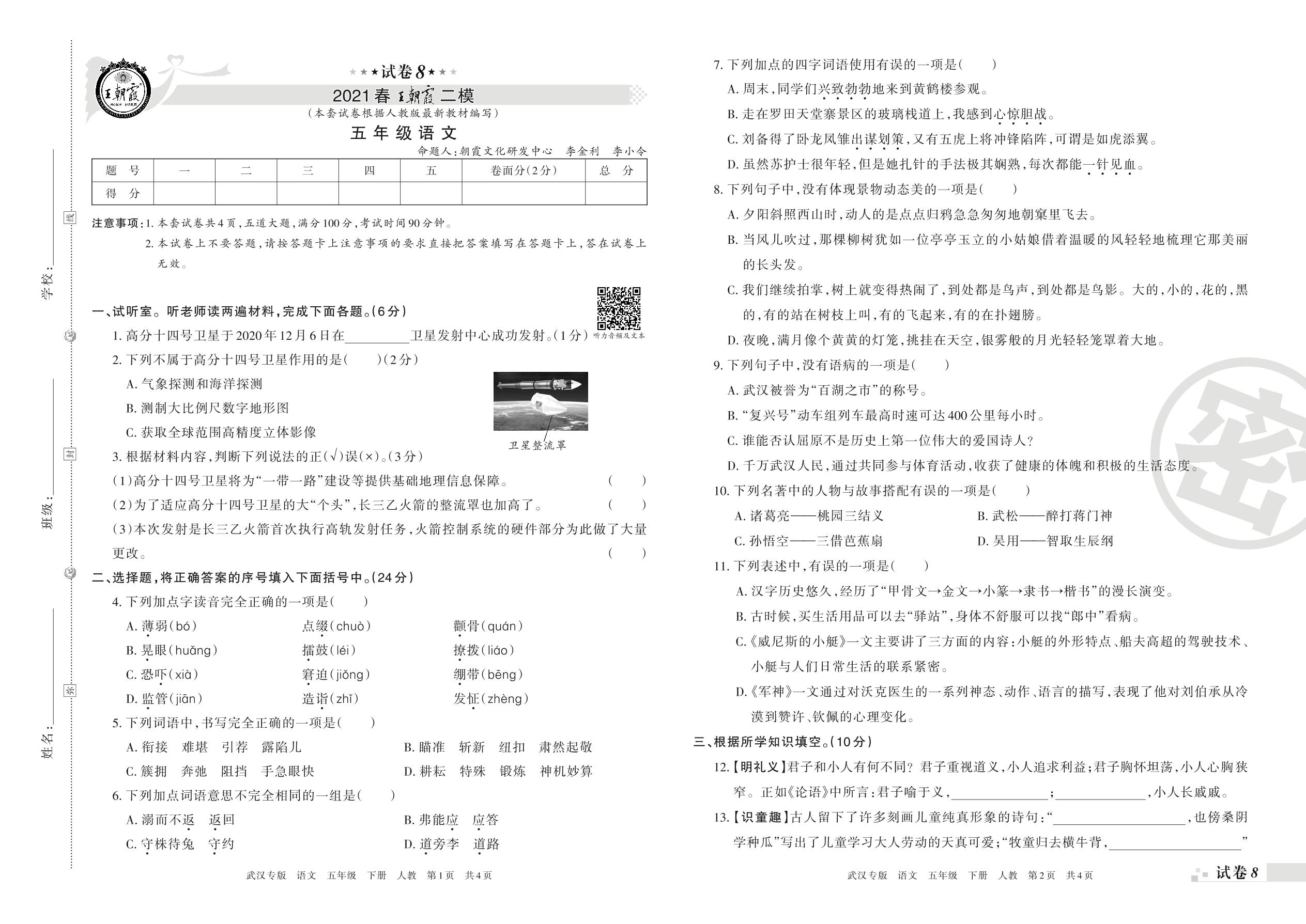 王朝霞期末模拟卷五年级下册语文(人教版)_R210801183527【8】
